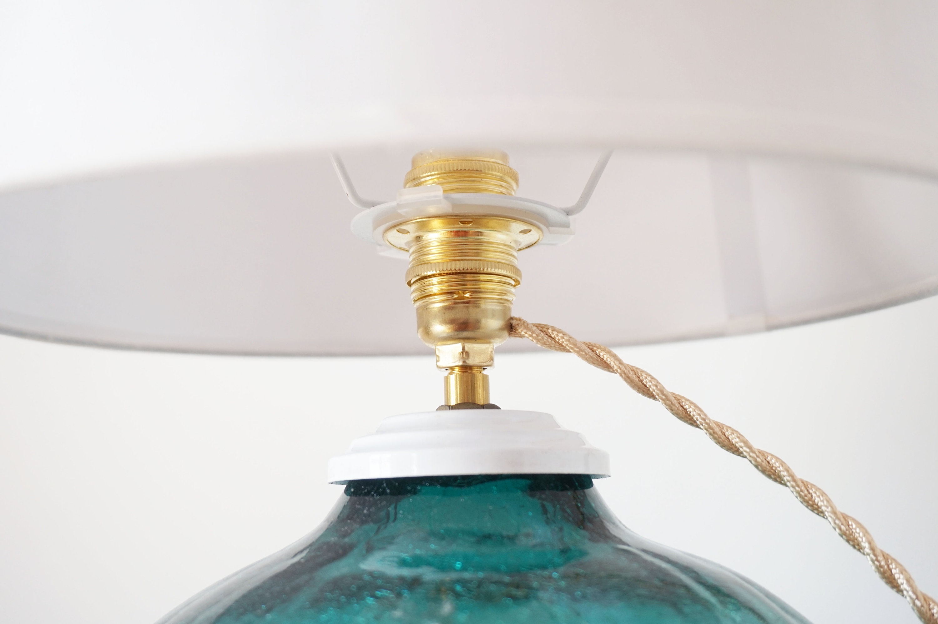 Lampshade in new white woven cotton.
