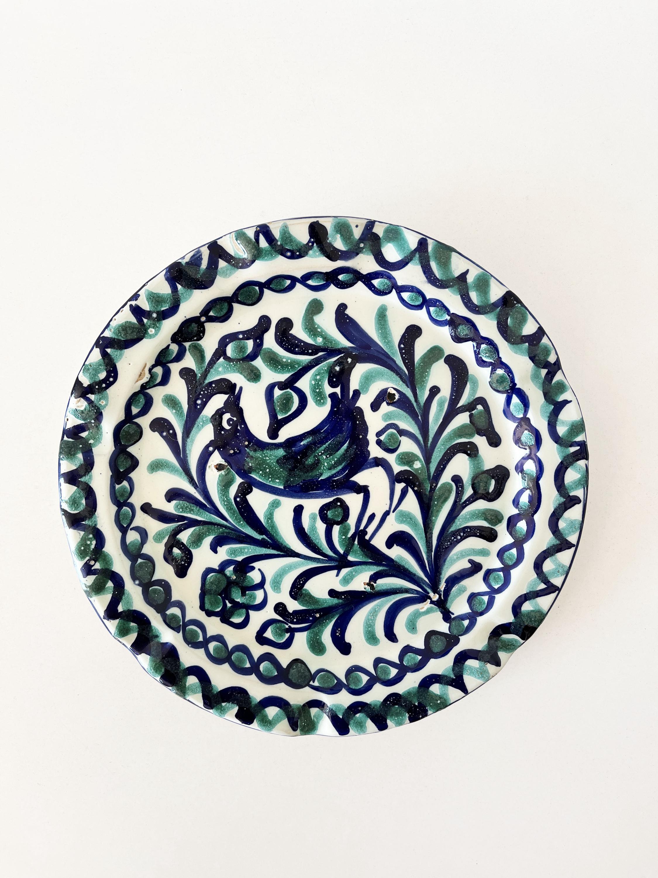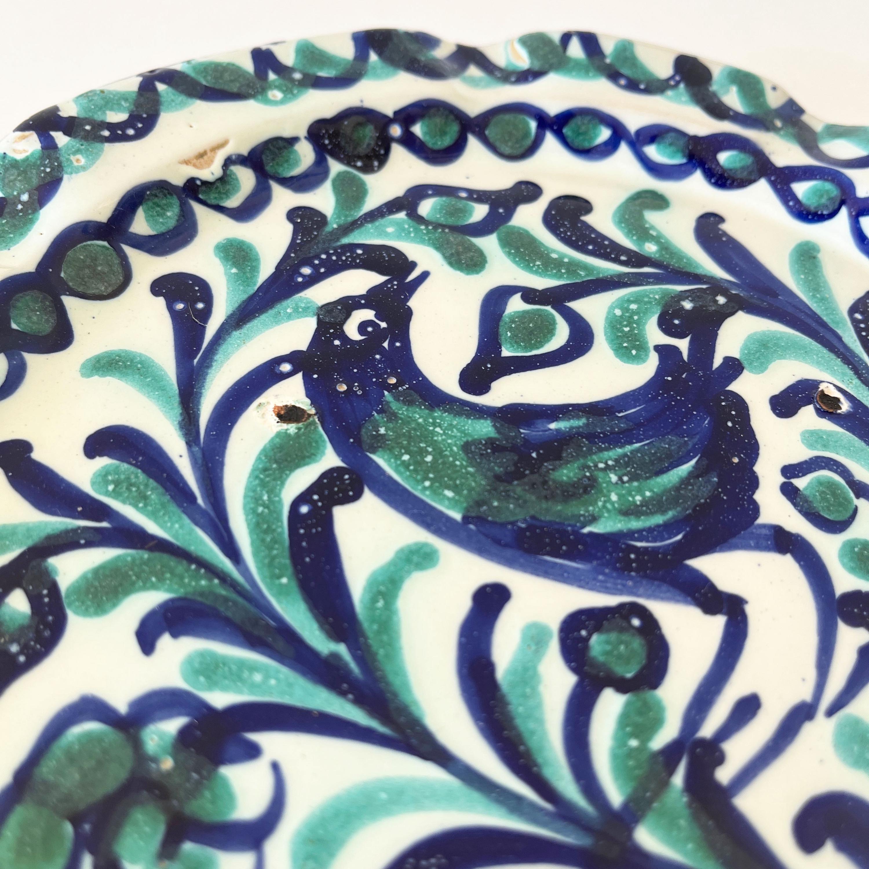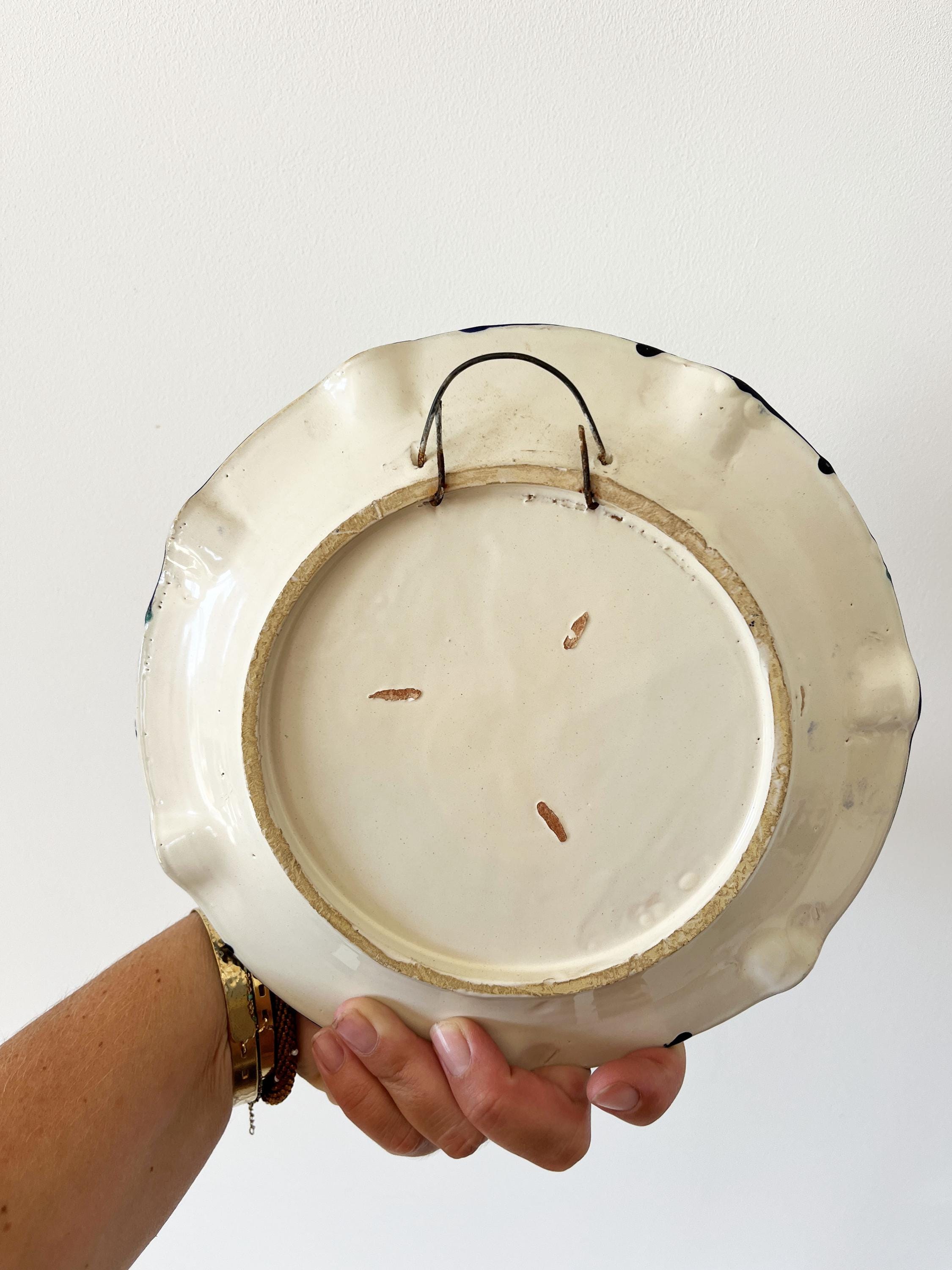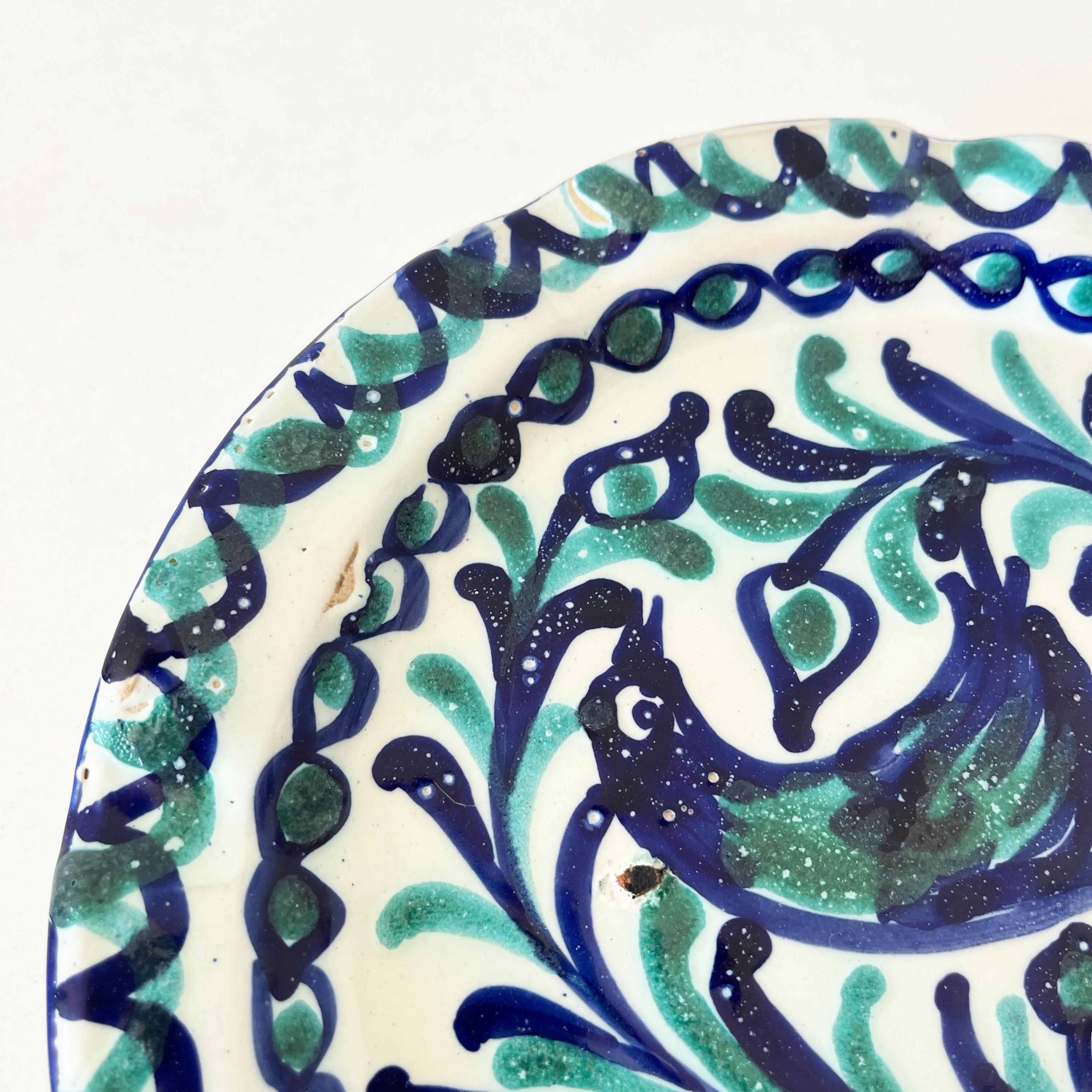 Antique decorative glazed terracotta plate, of Spanish origin.