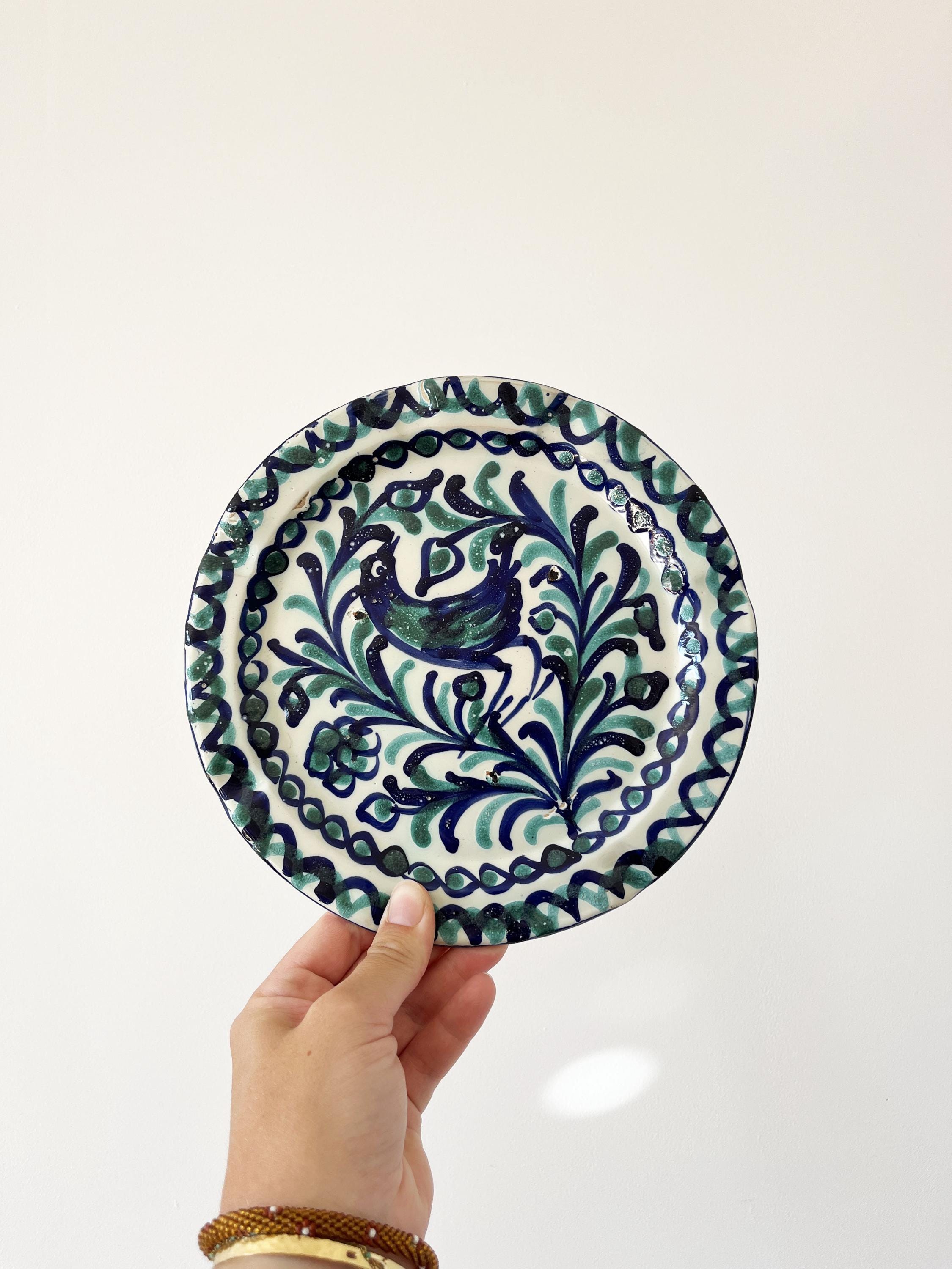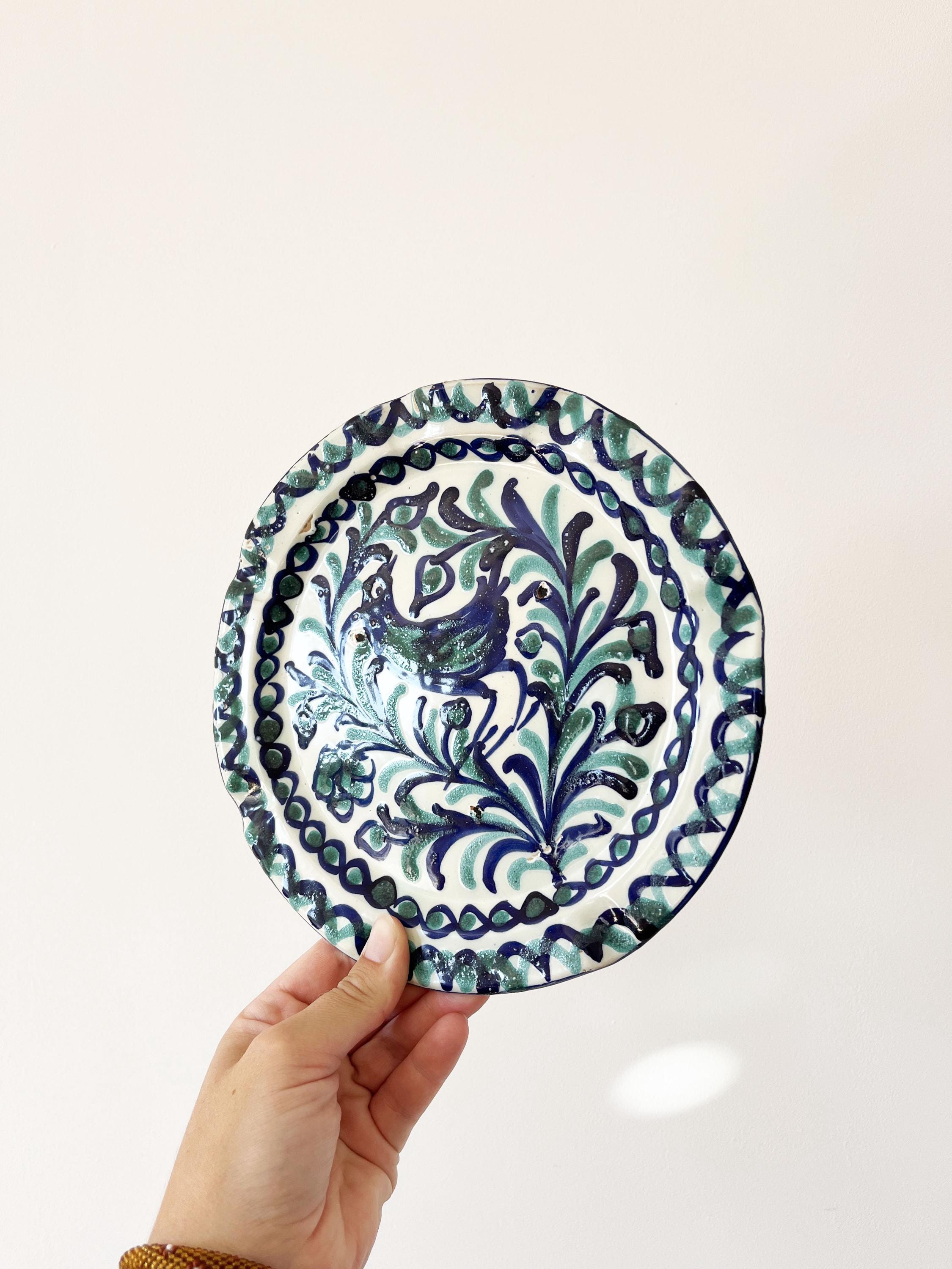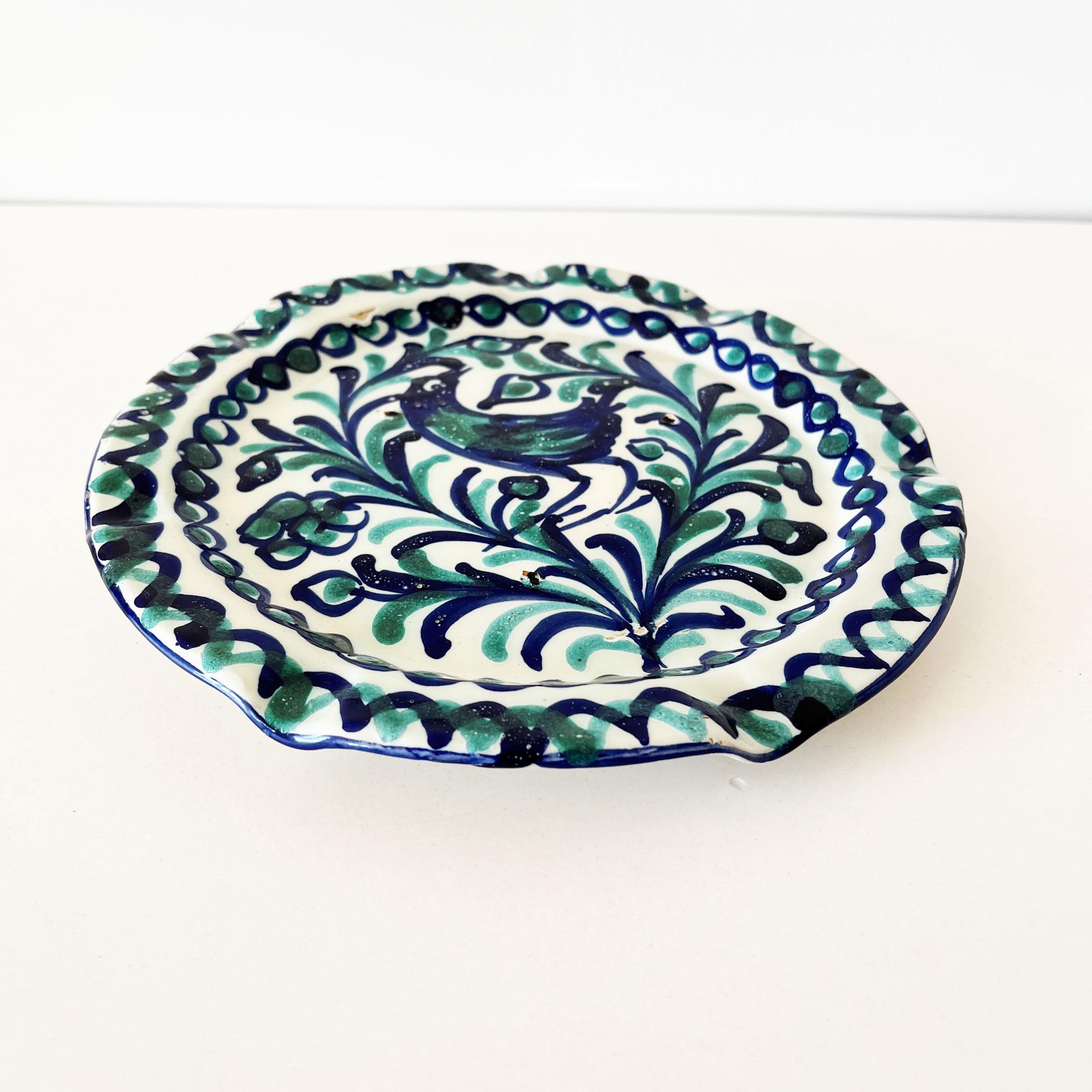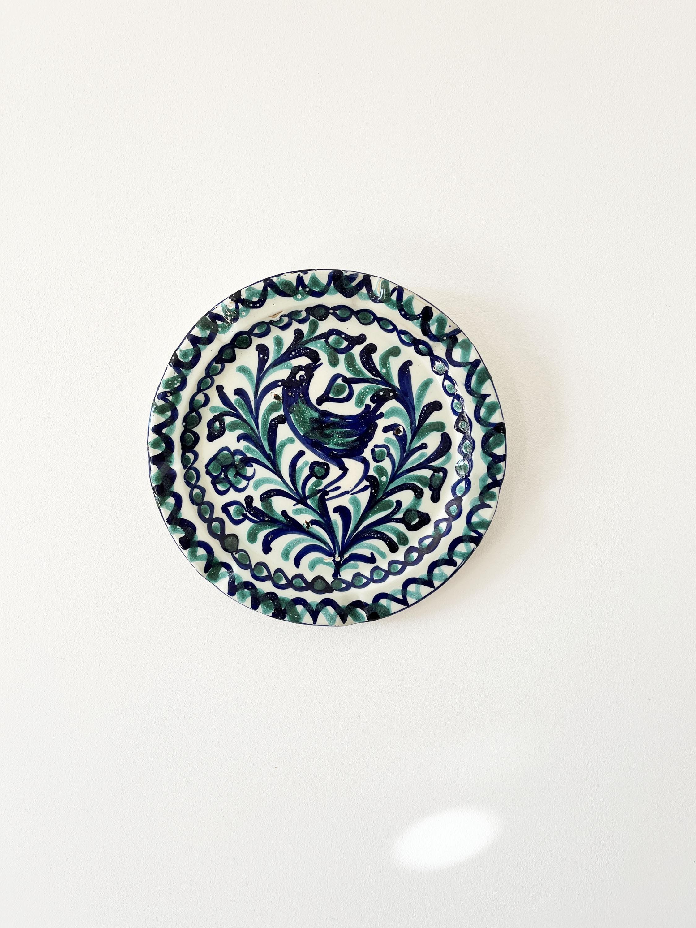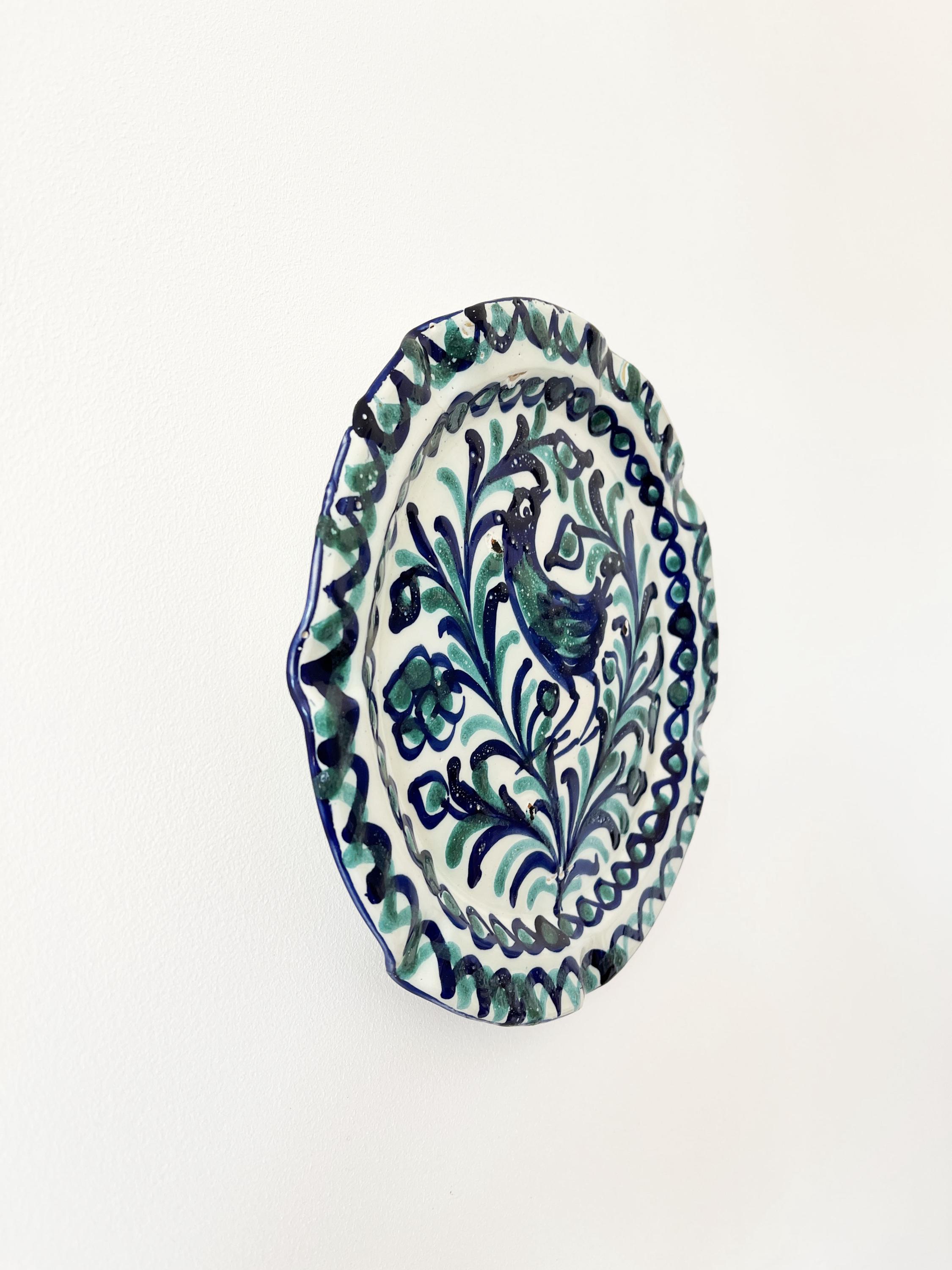 Antique decorative glazed terracotta plate, of Spanish origin.