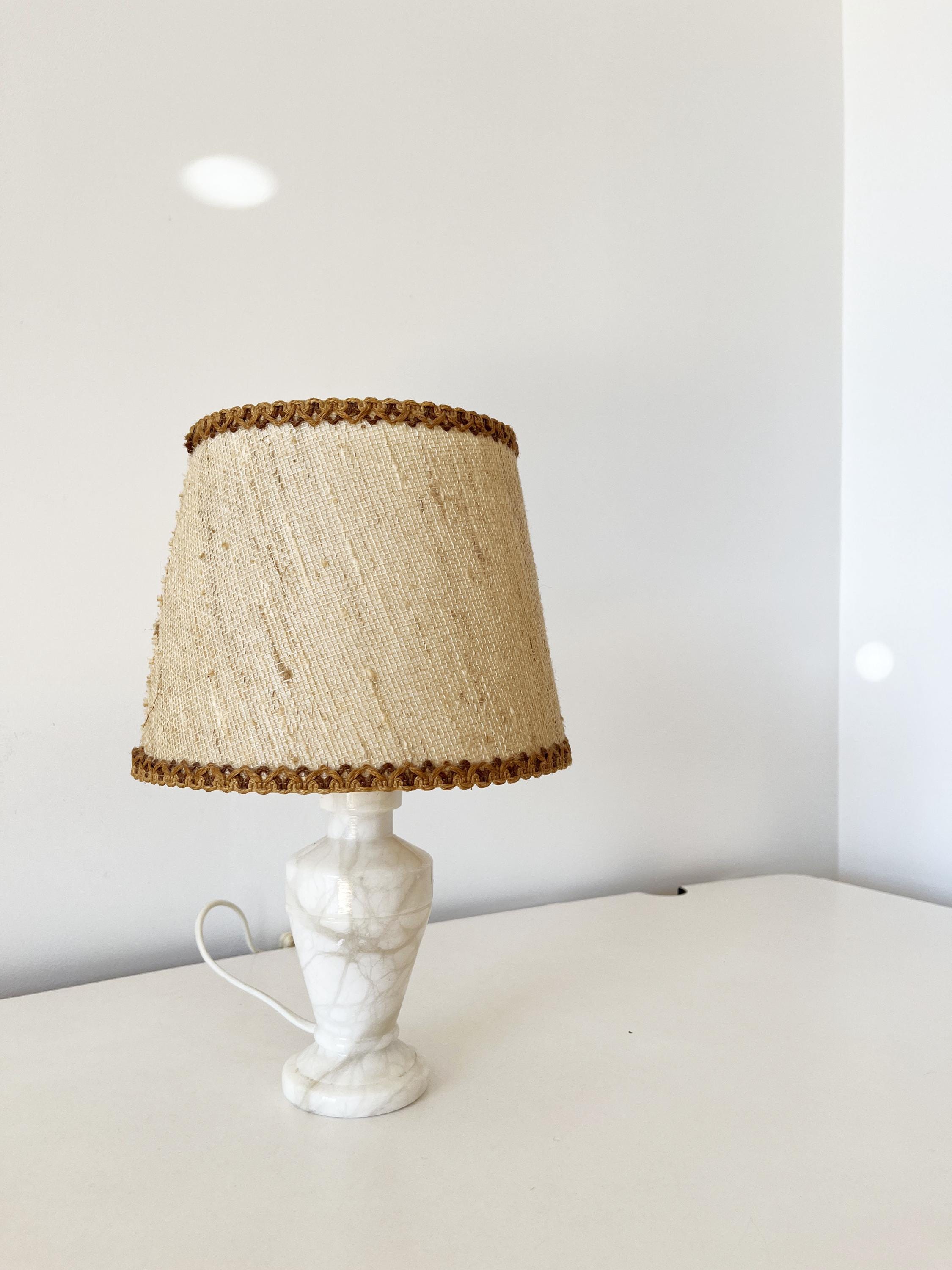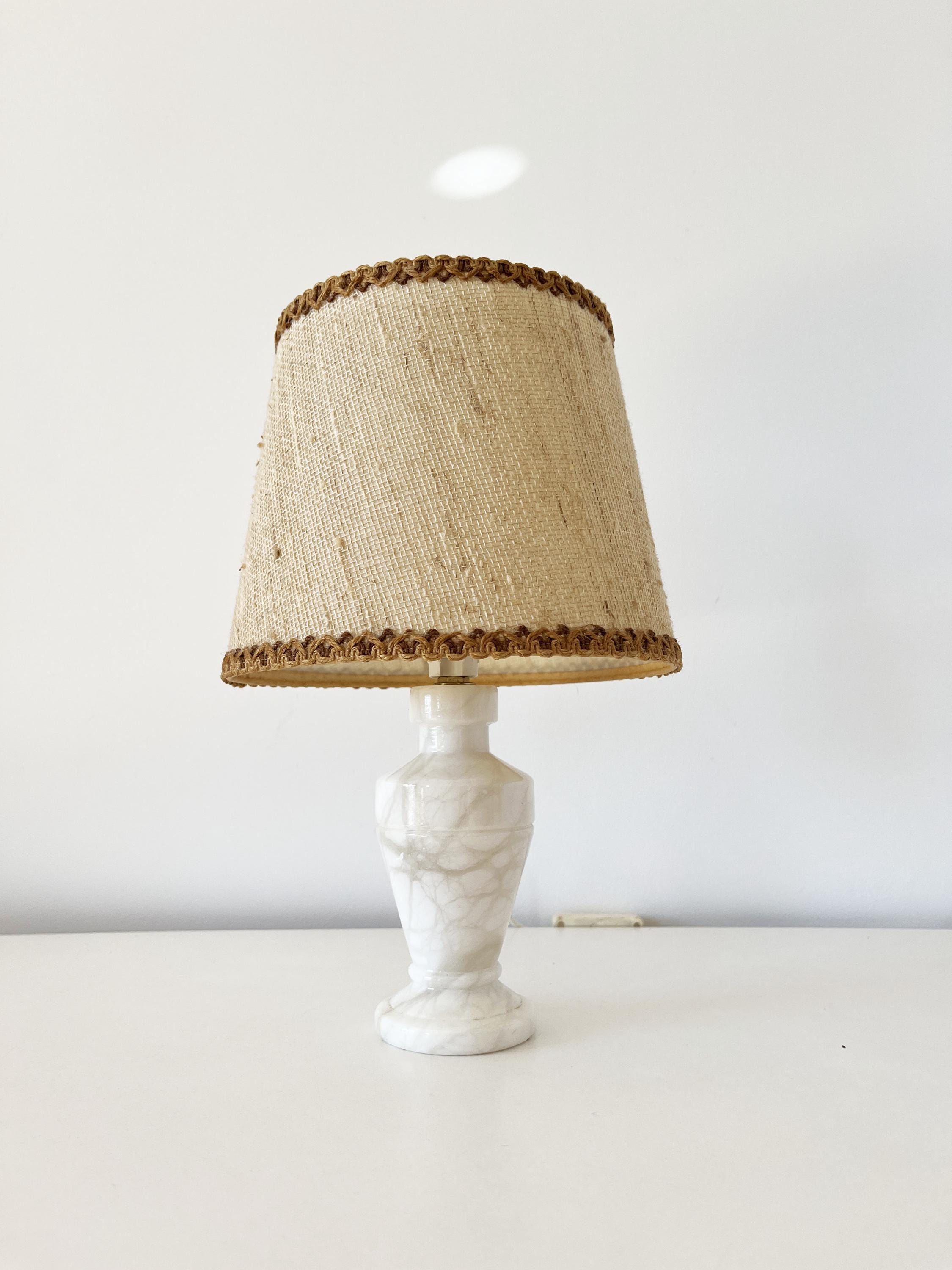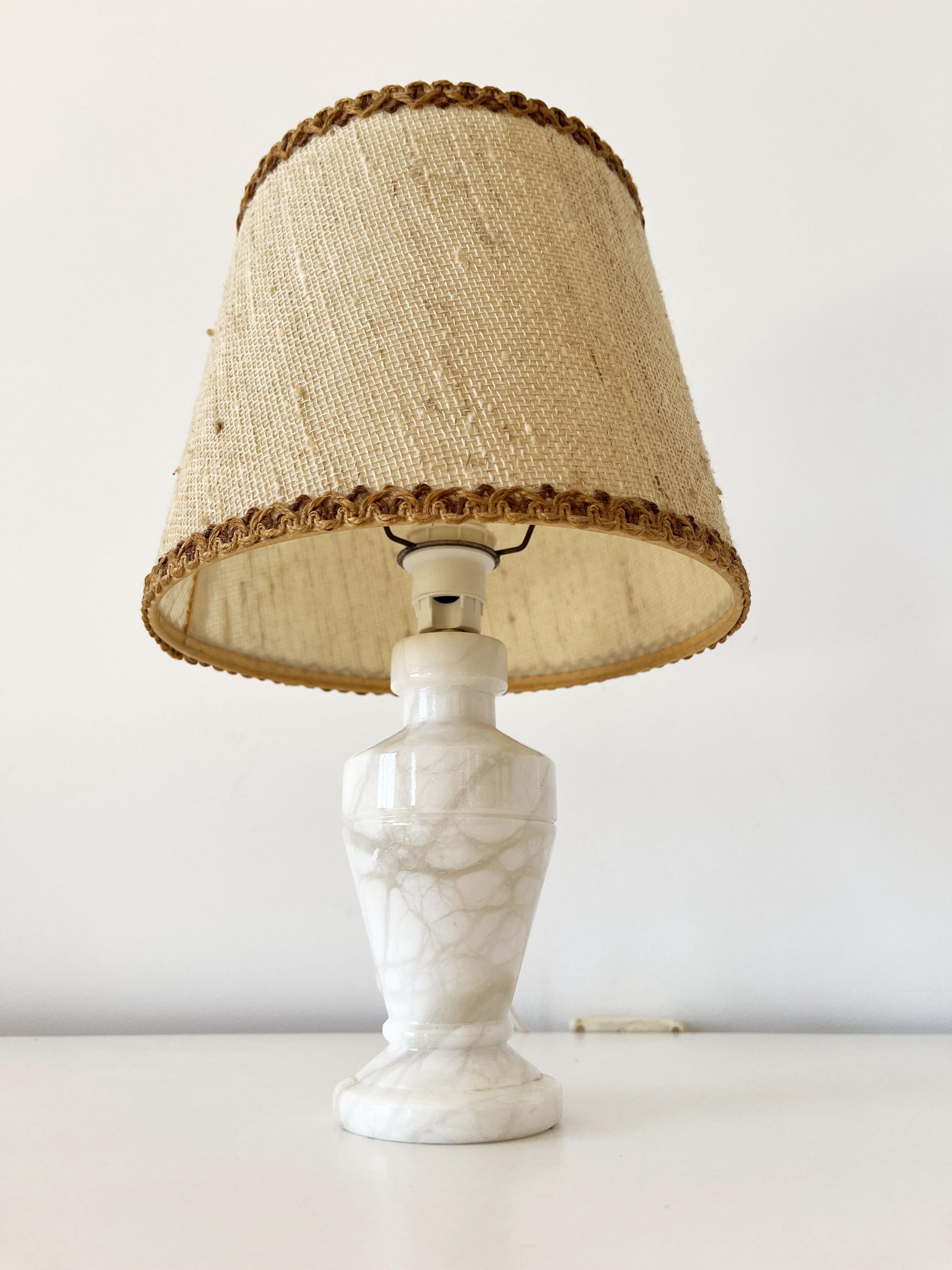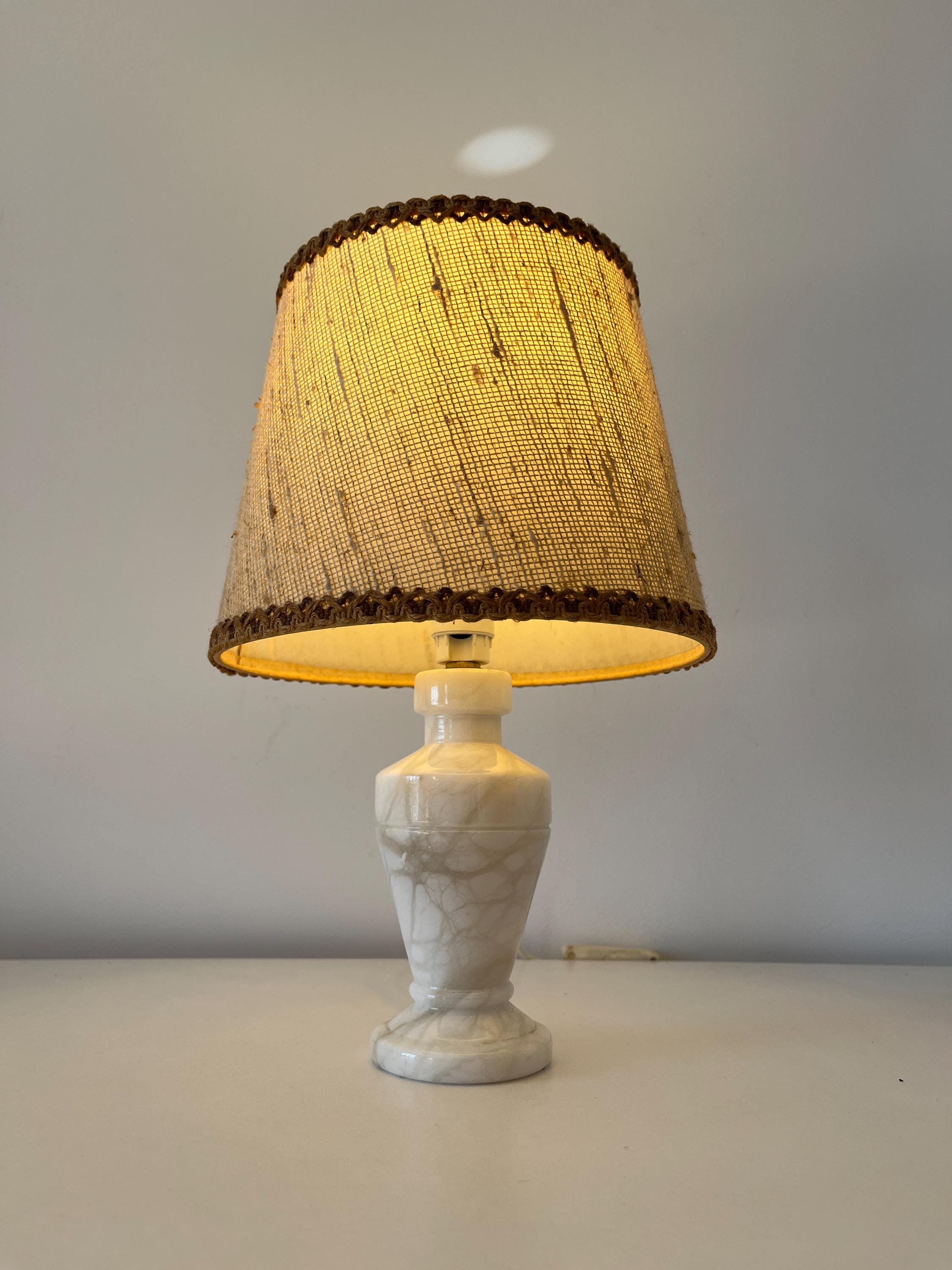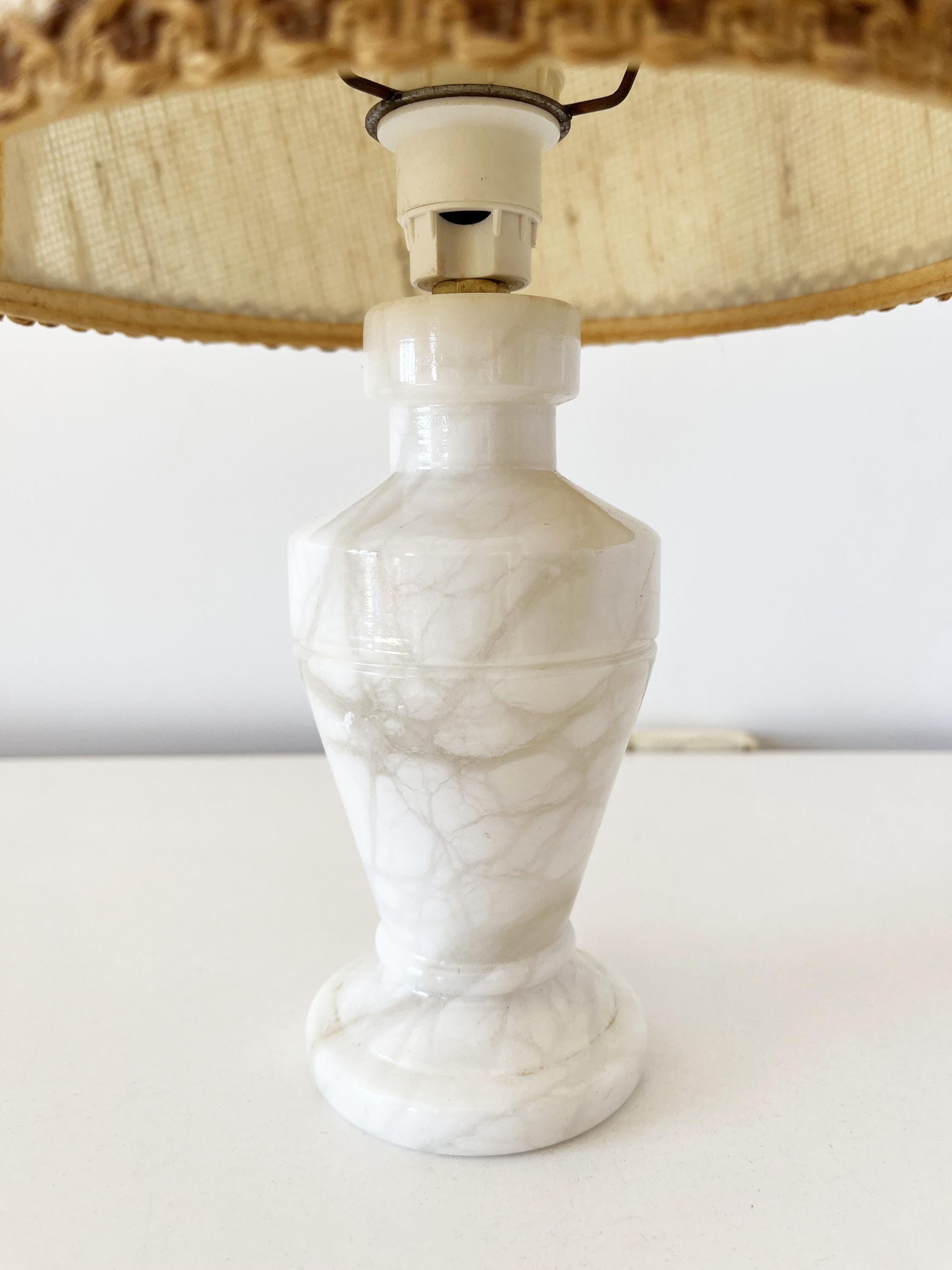 Vintage alabaster and wicker lamp from the 1960s.