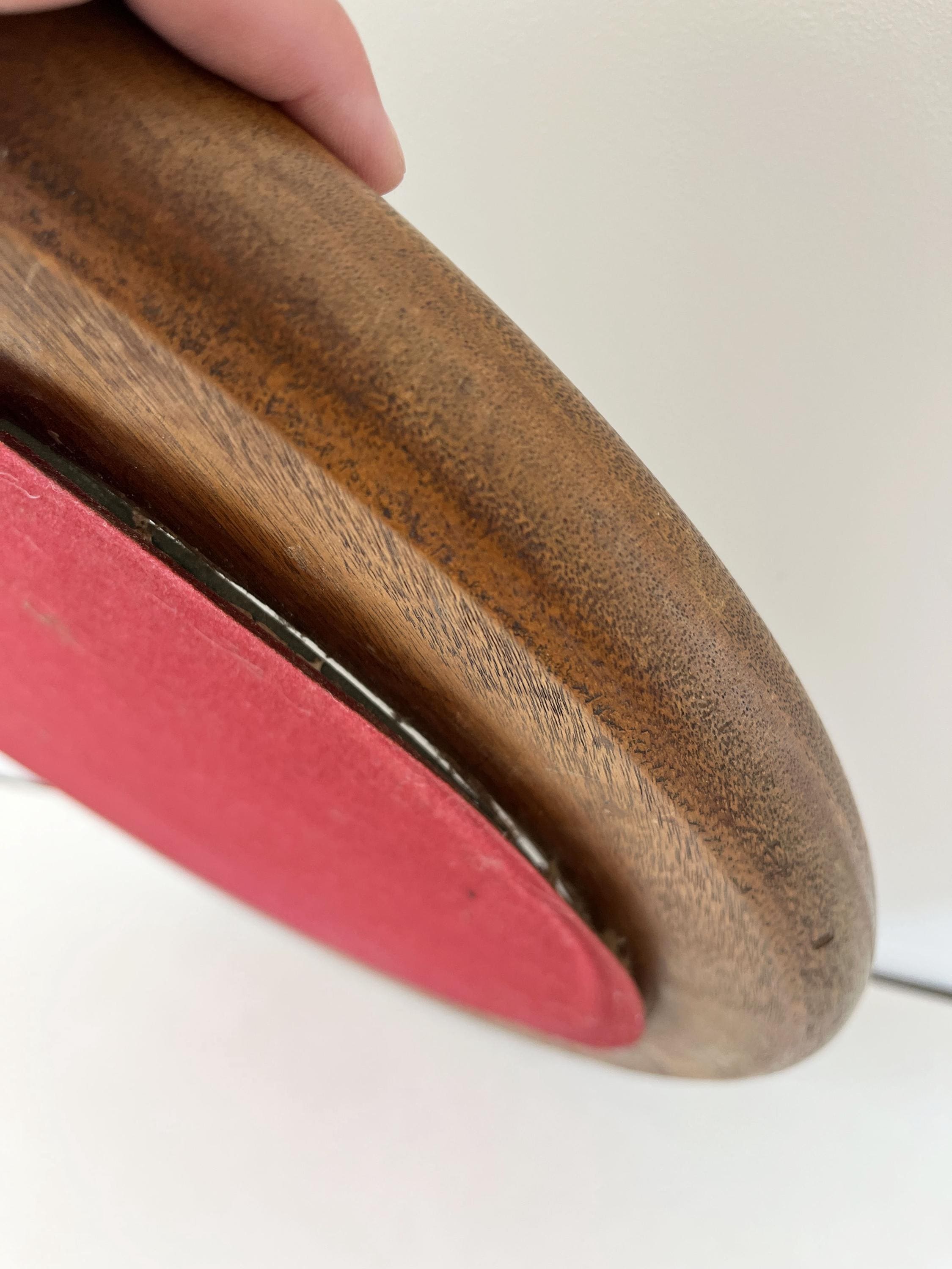 Very good condition, except note that the felt on the back of the mirror is peeling off a little.