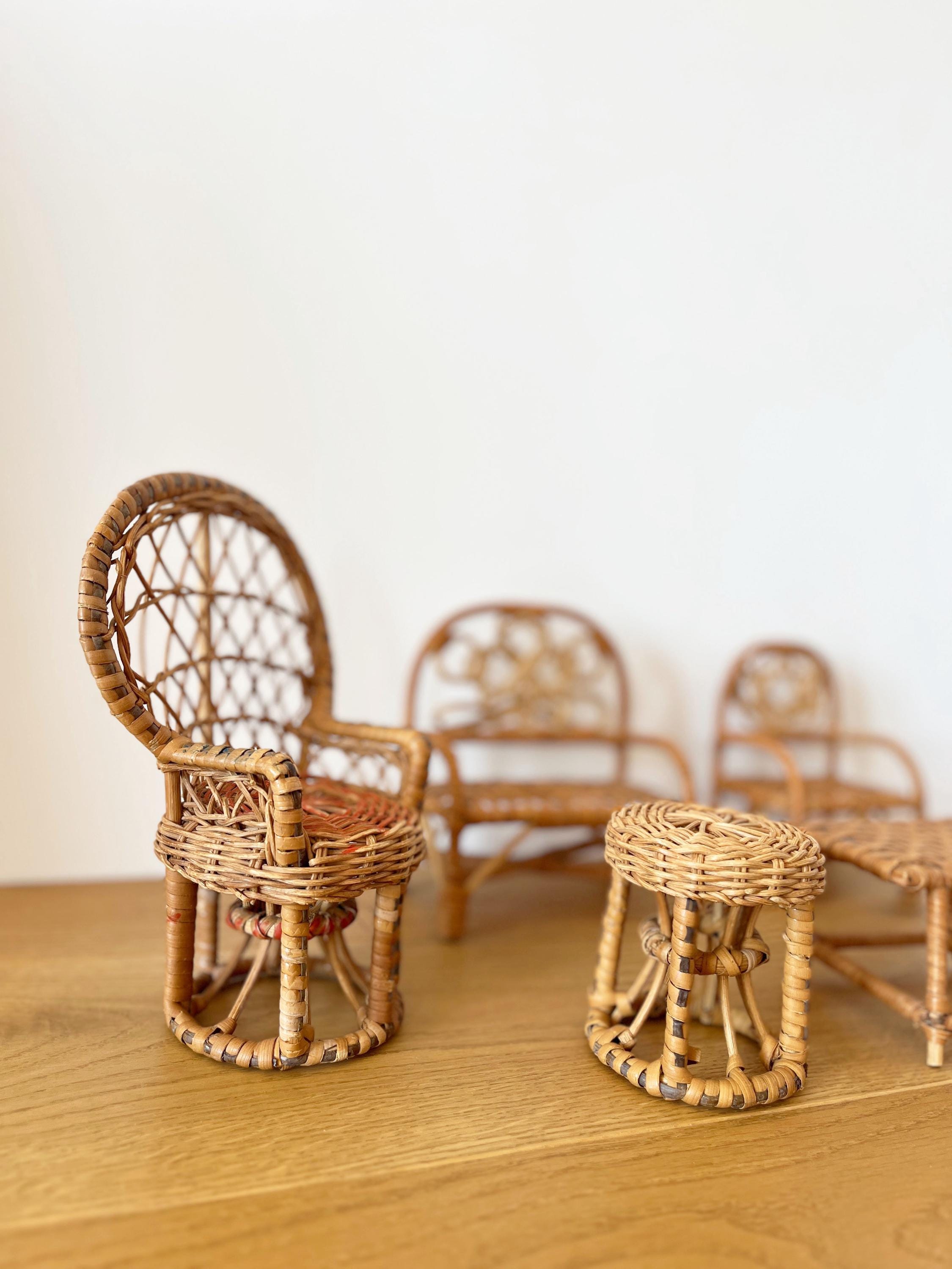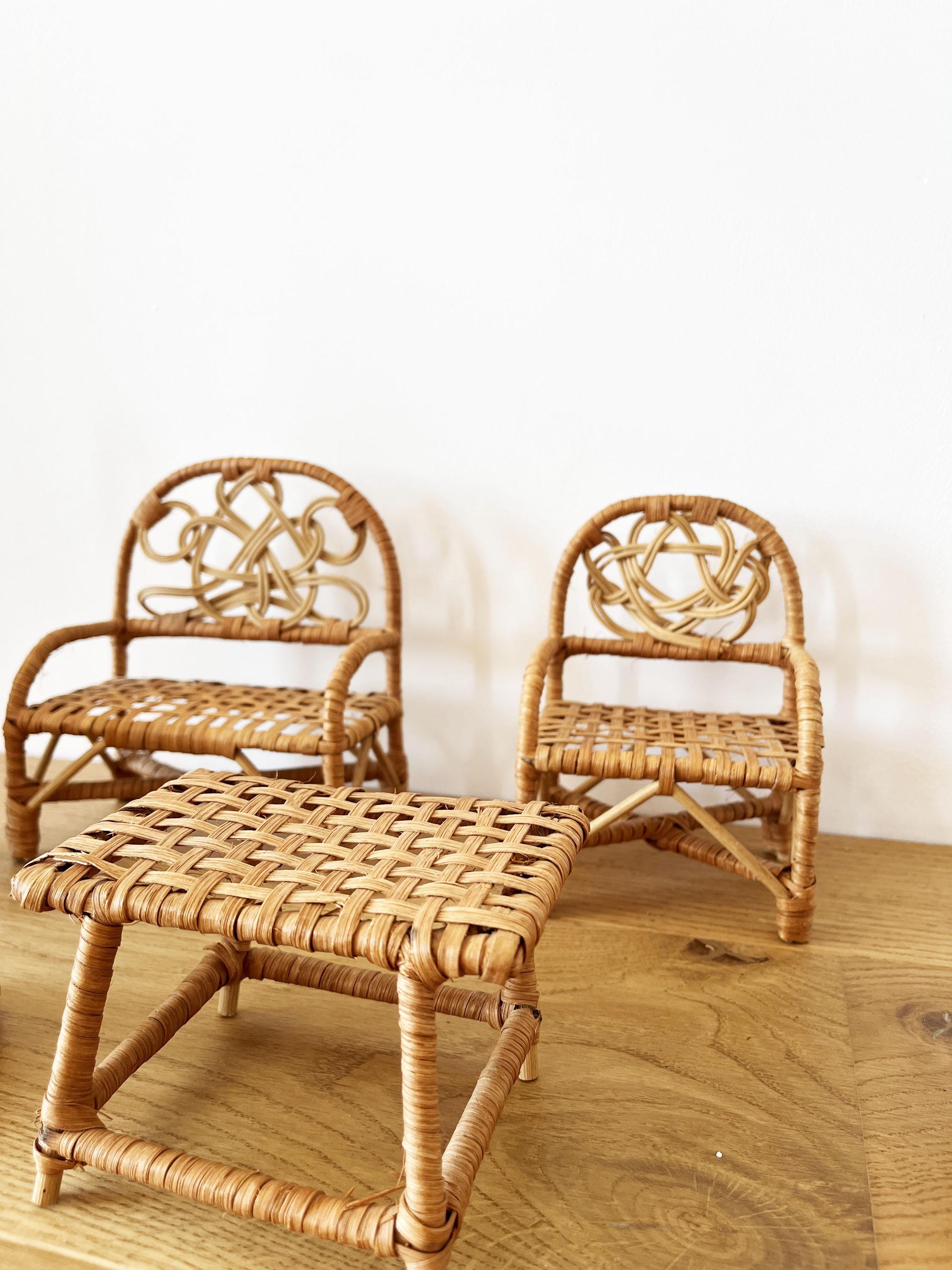 A pair of "Emmanuelle" armchairs (H=21cm W=15cm) and the small coffee table (H=9cm D=8cm)