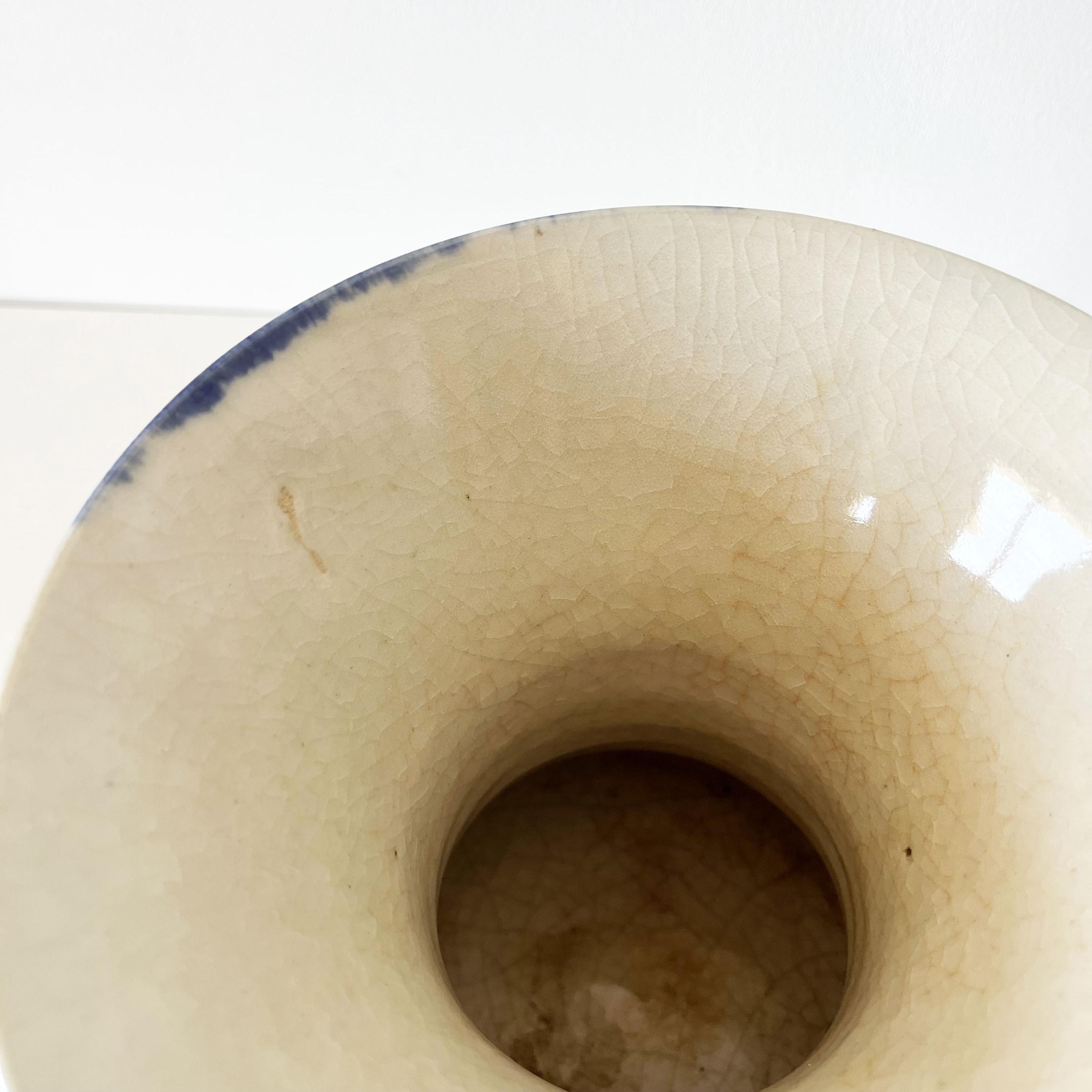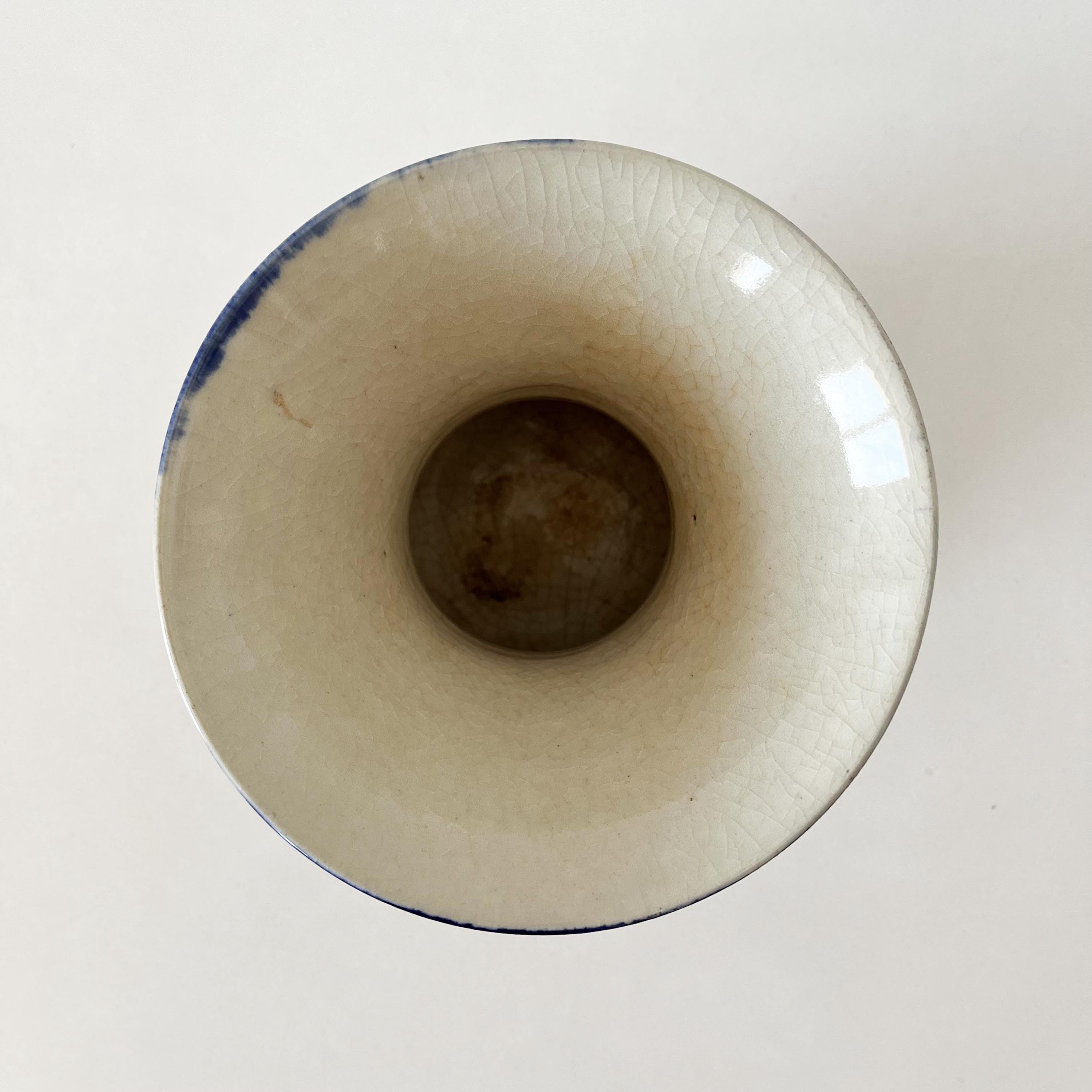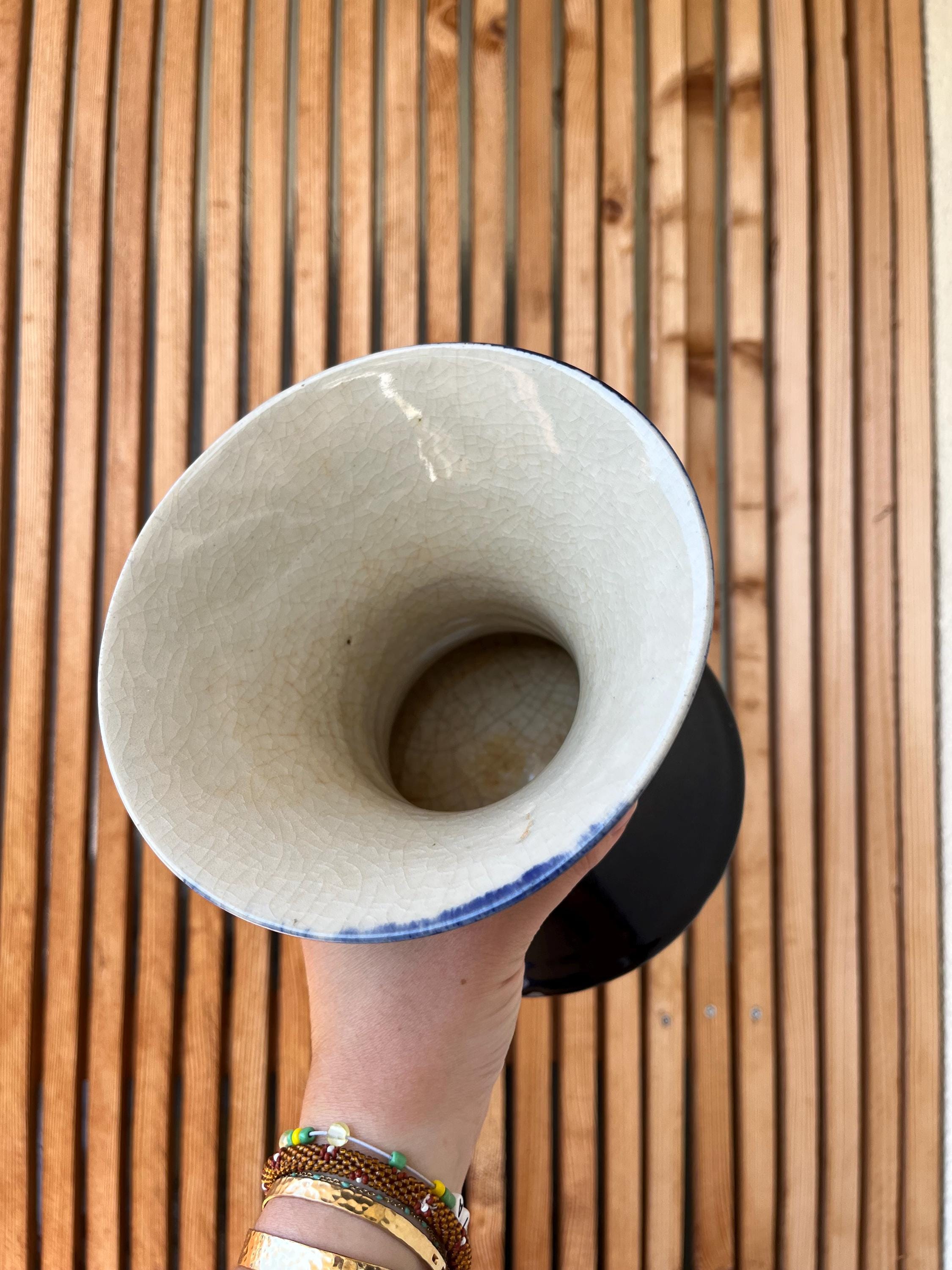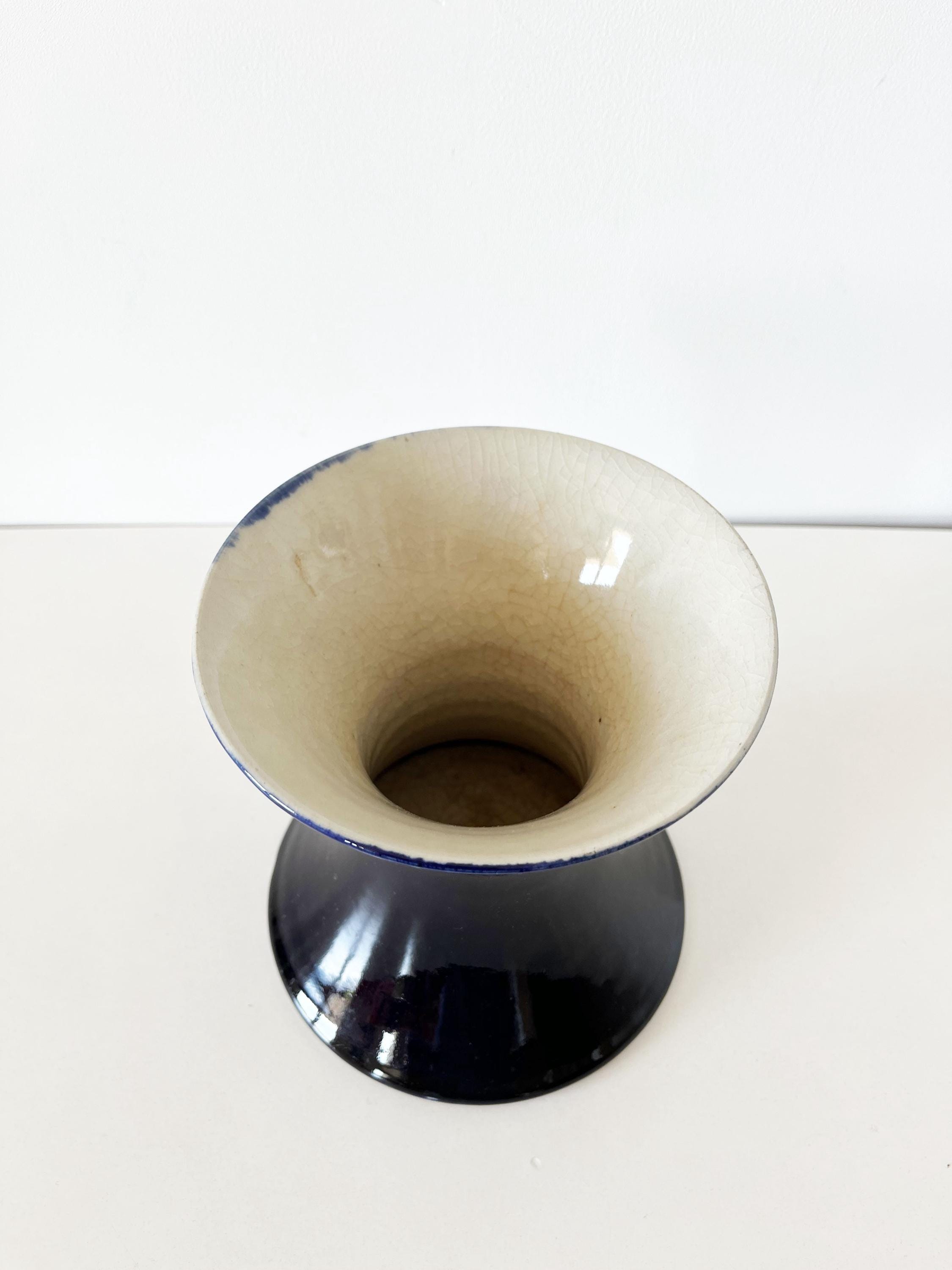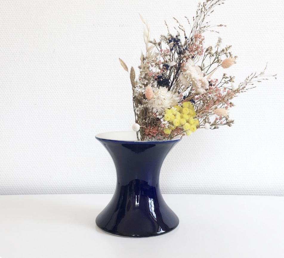 Navy blue ceramic vase in the shape of a diabolo from the 1950s