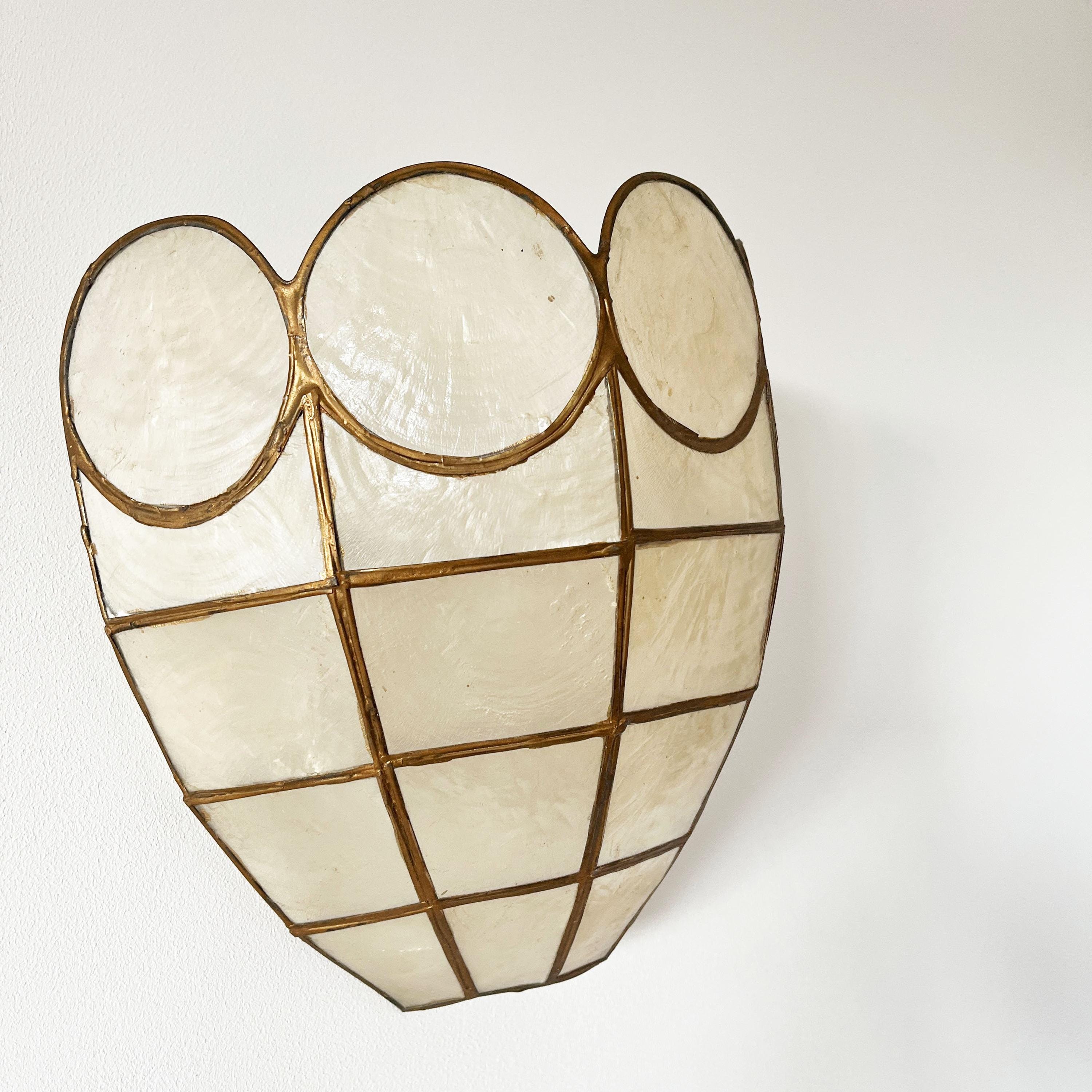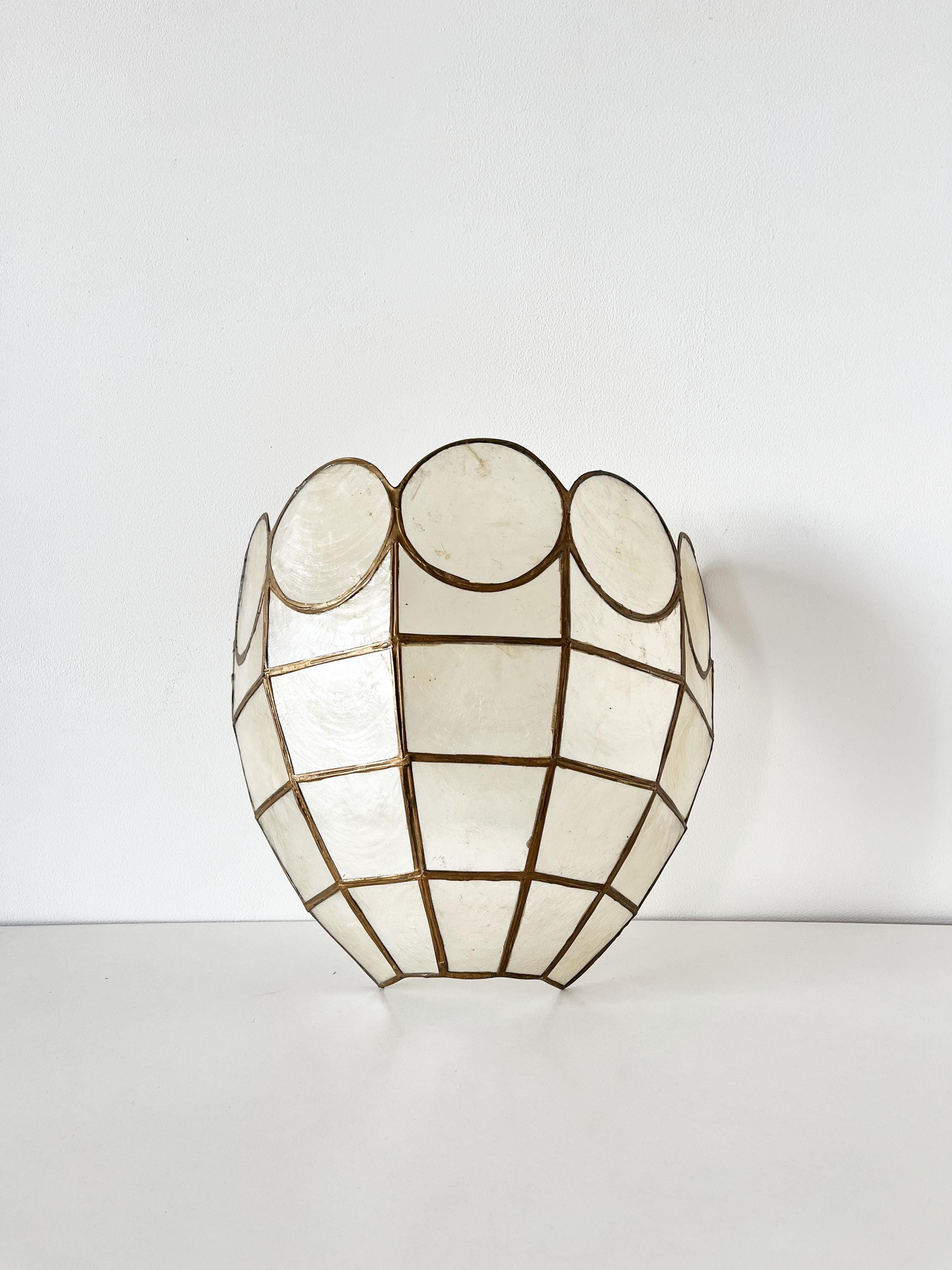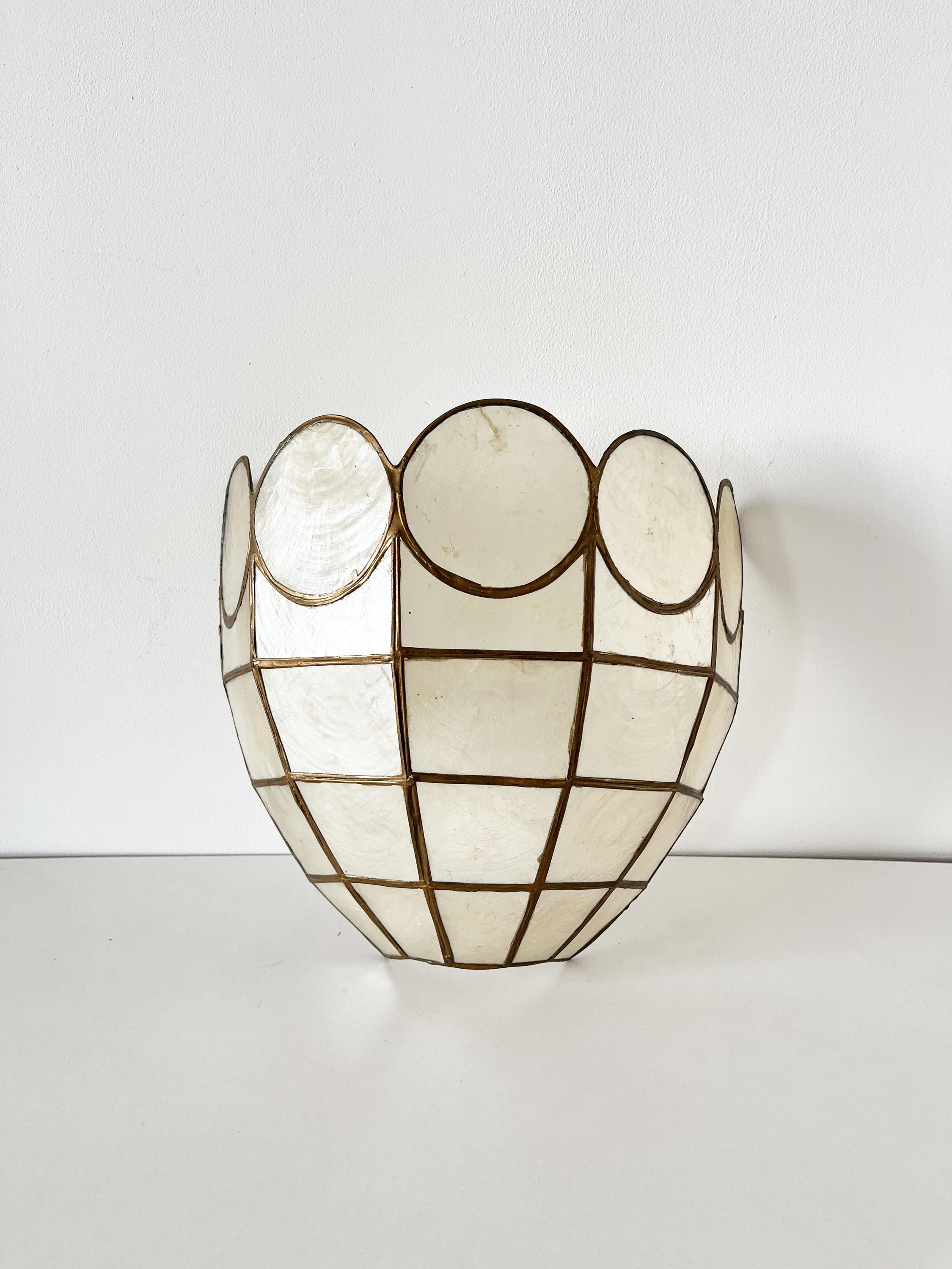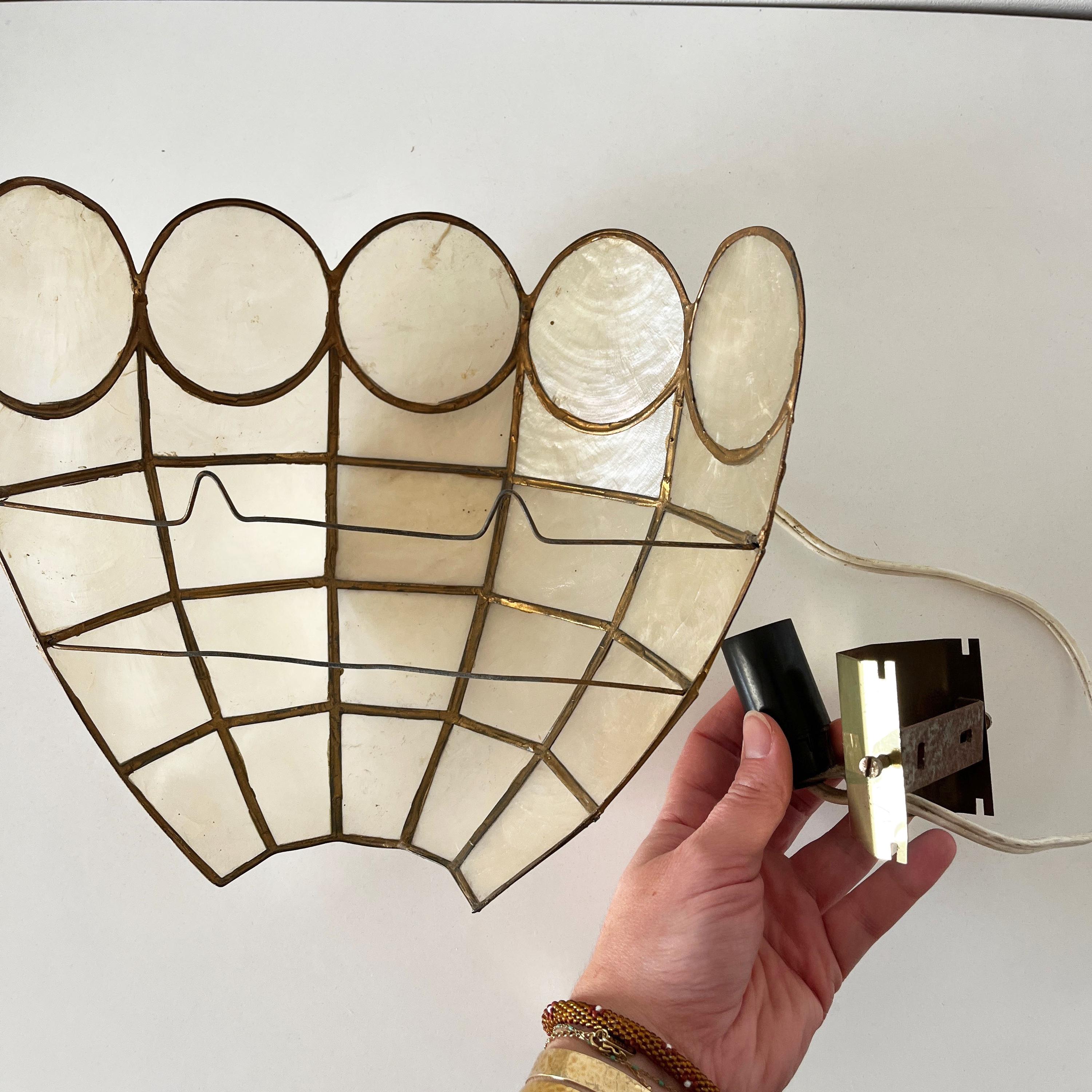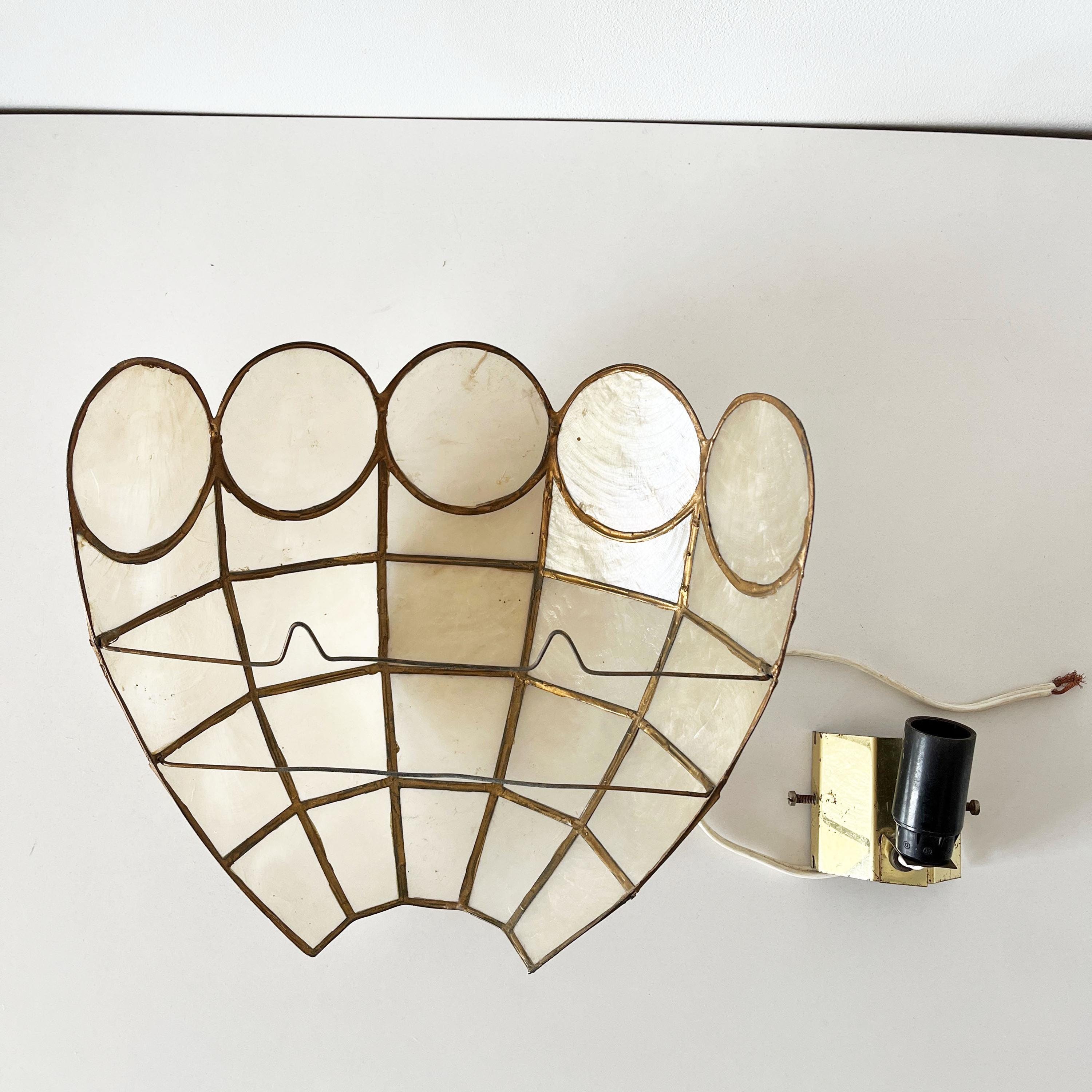 Beautiful wall sconce in the shape of a seashell or petal, made of mother-of-pearl with a gilded tinplate border.