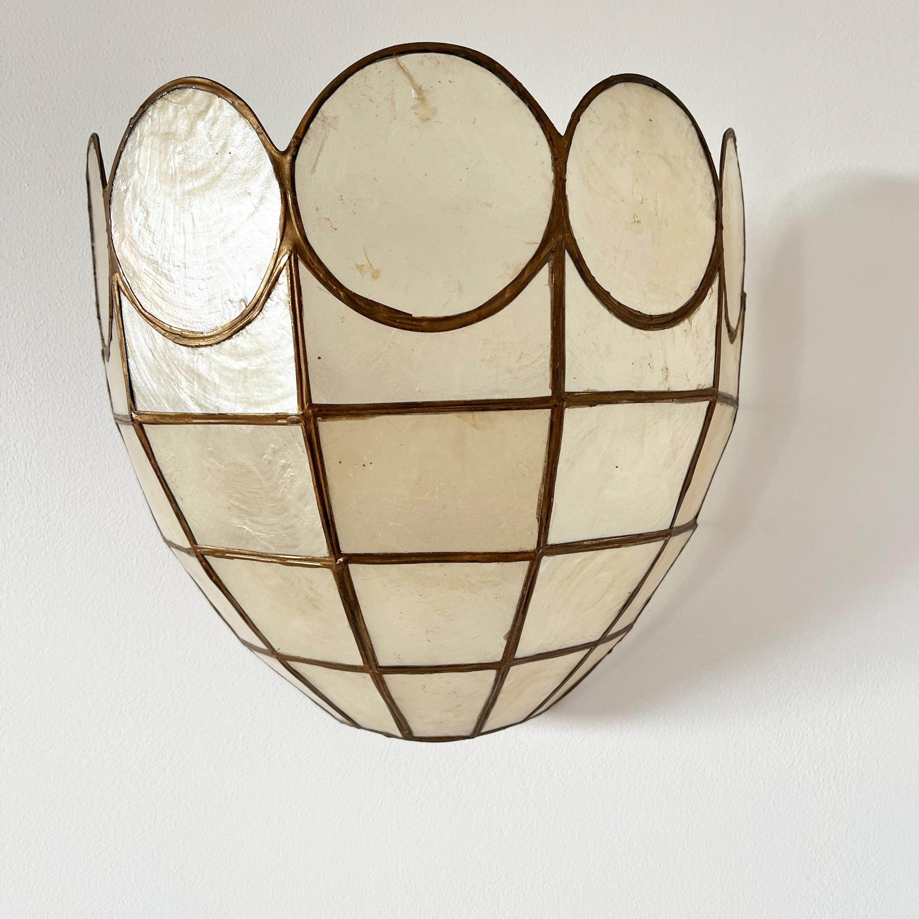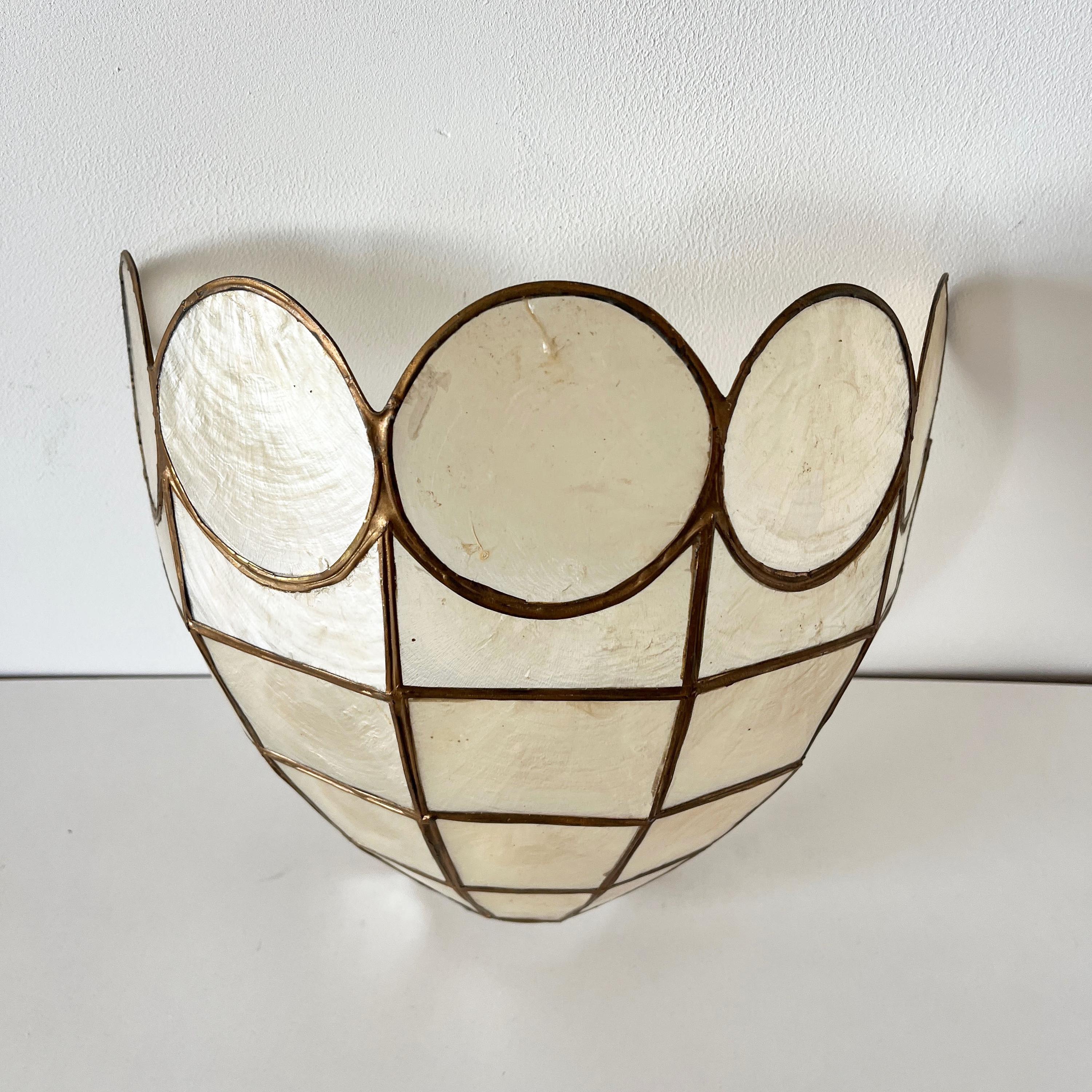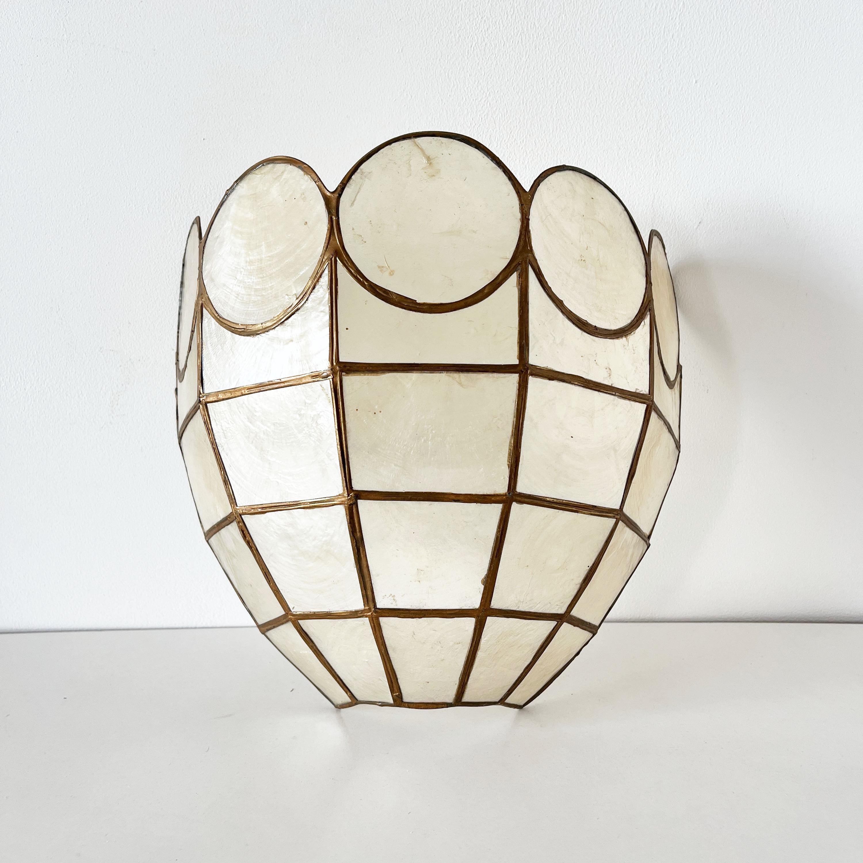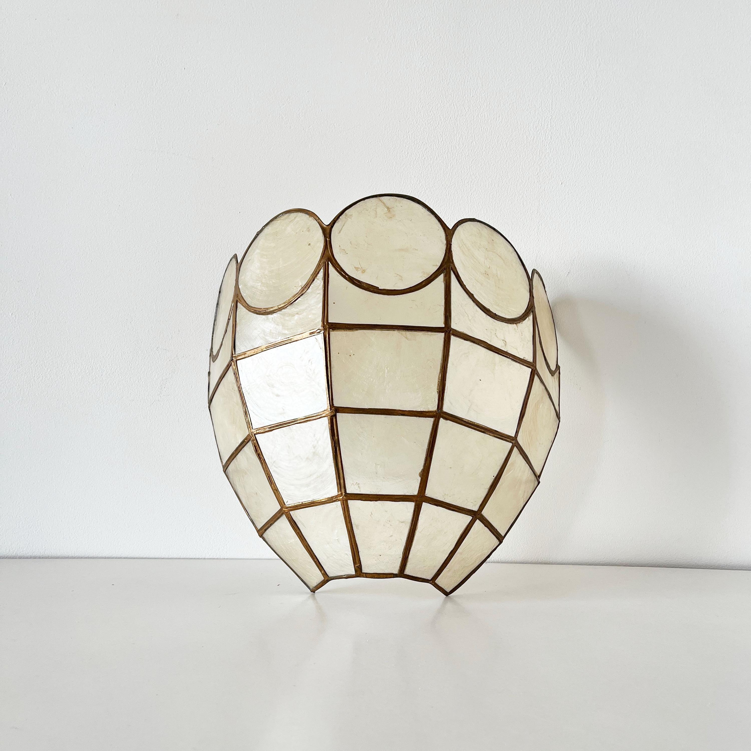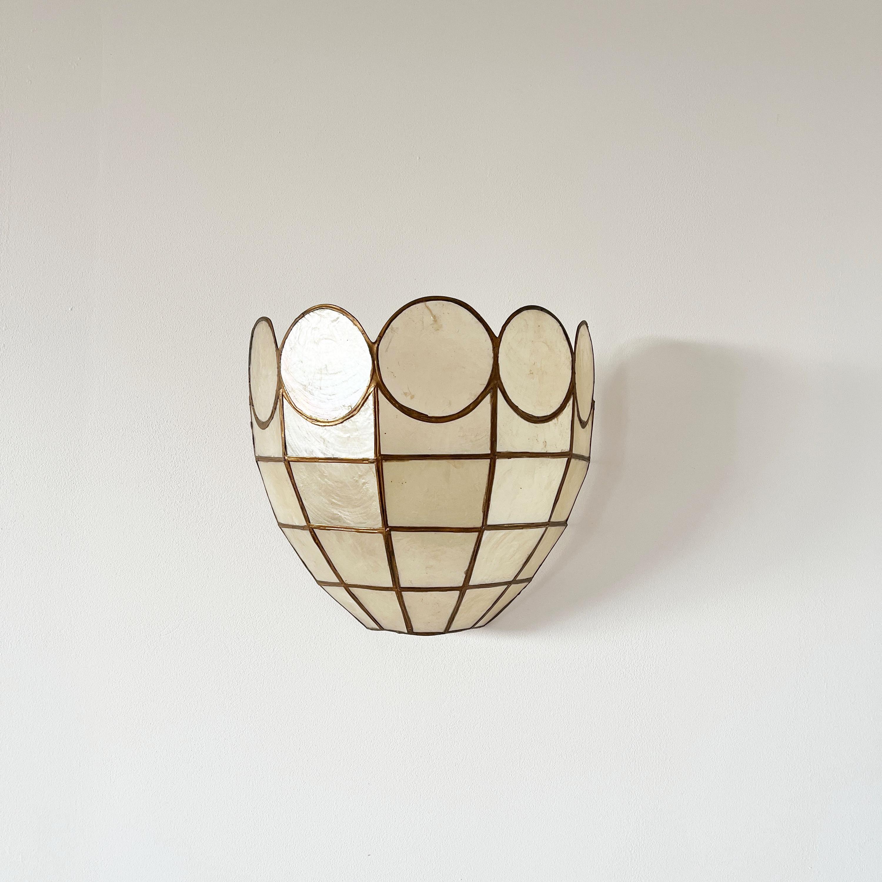 Beautiful wall sconce in the shape of a seashell or petal, made of mother-of-pearl with a gilded tinplate border.