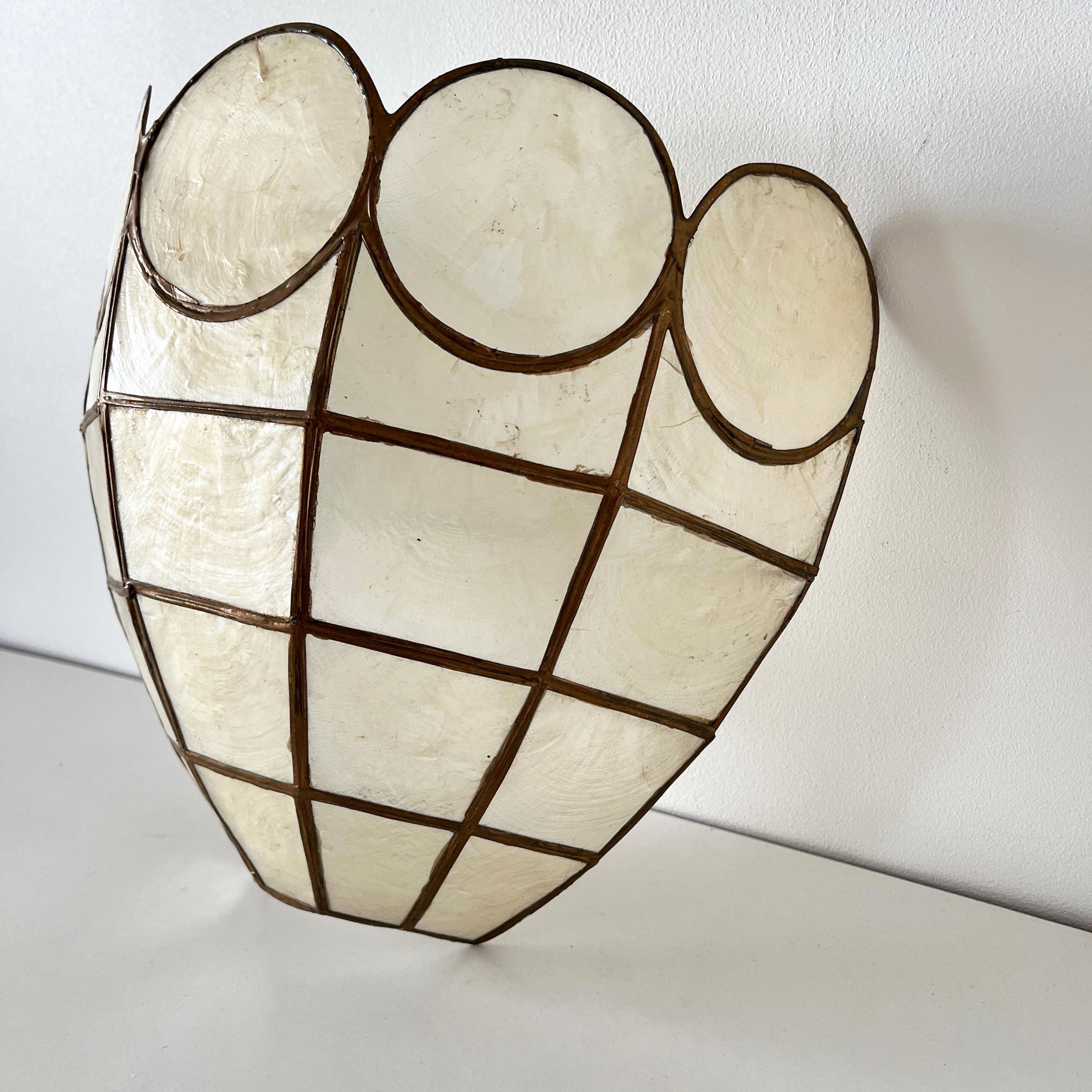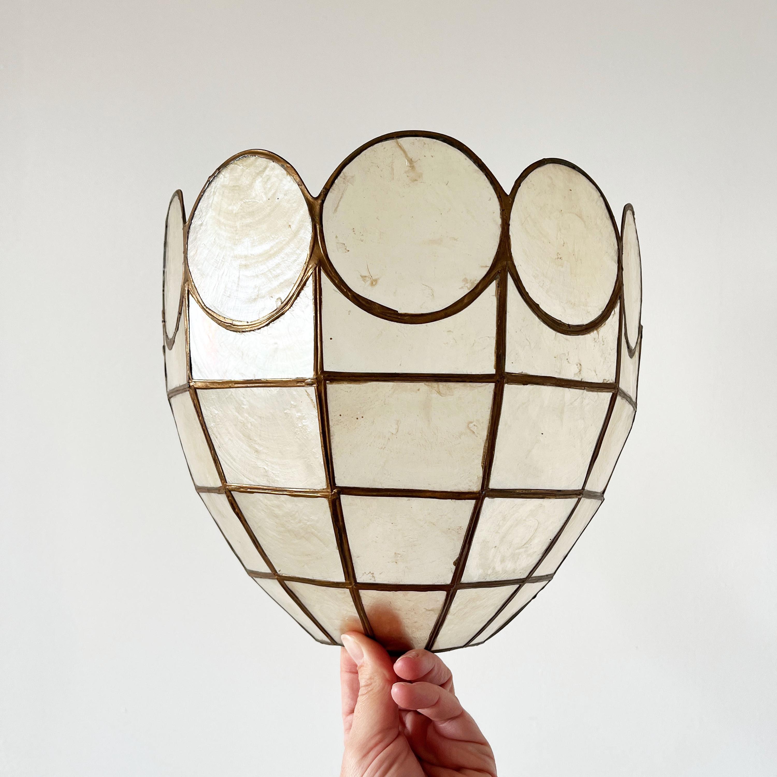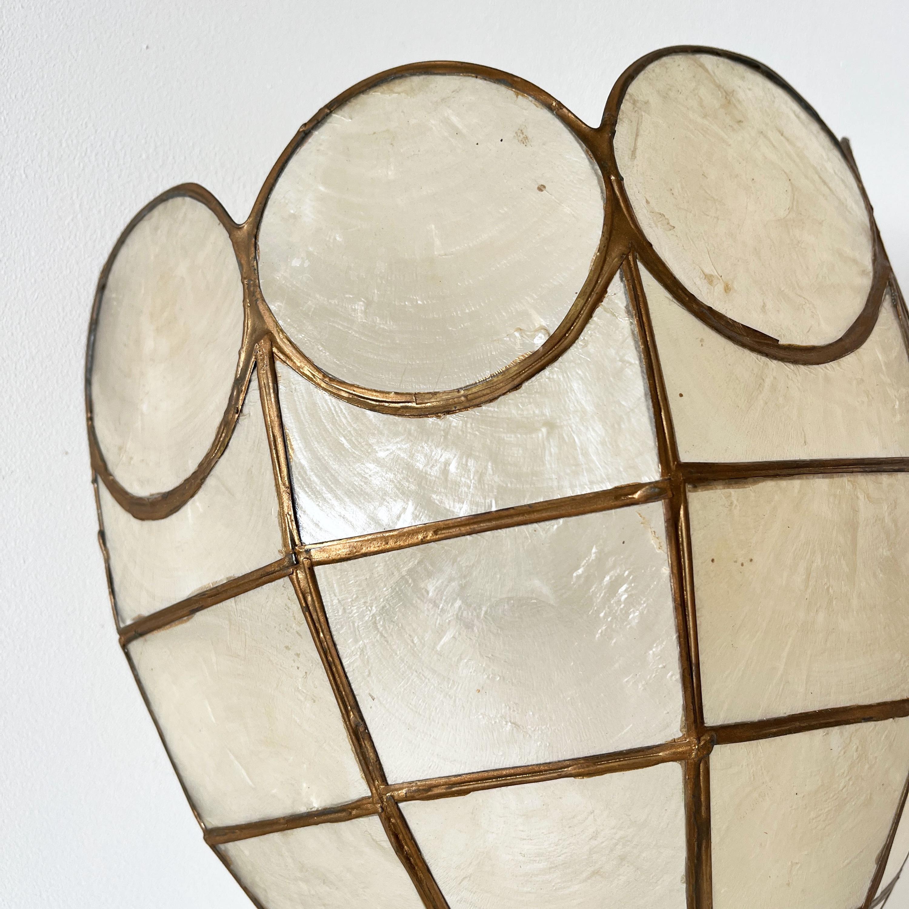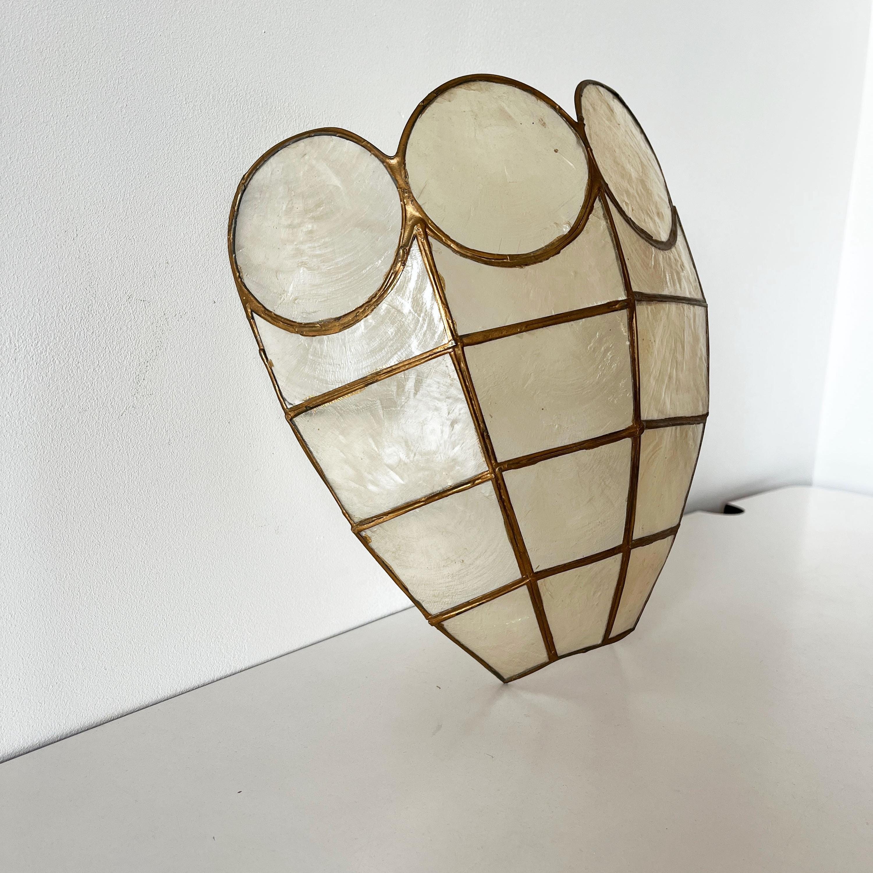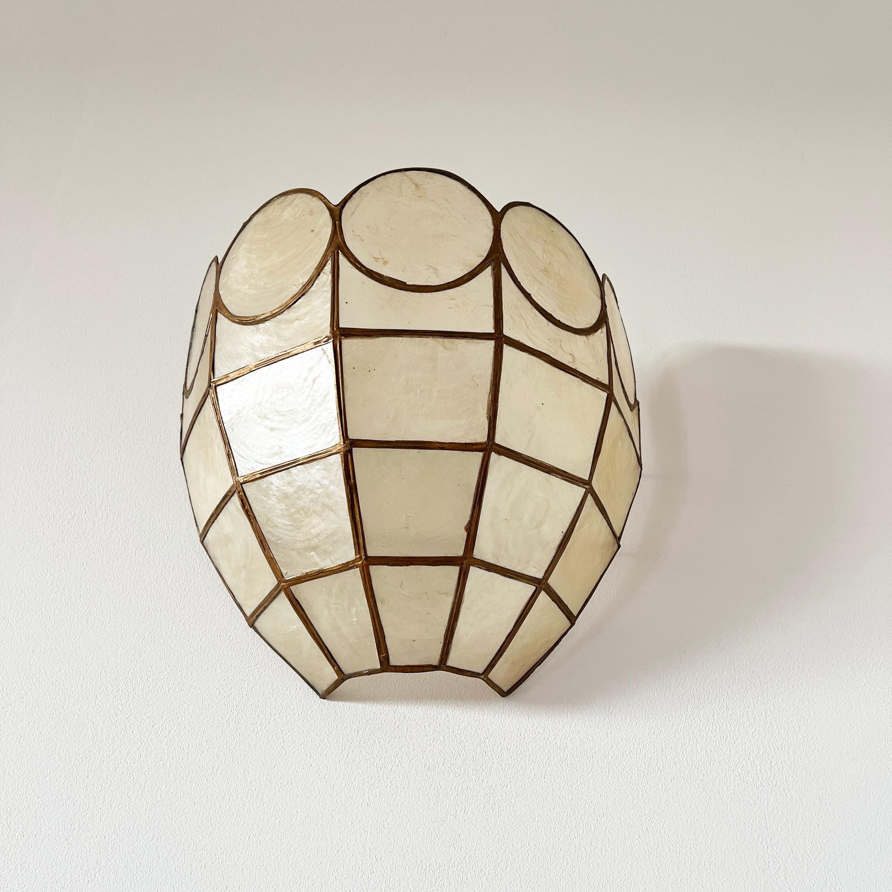 Beautiful wall sconce in the shape of a seashell or petal, made of mother-of-pearl with a gilded tinplate border.