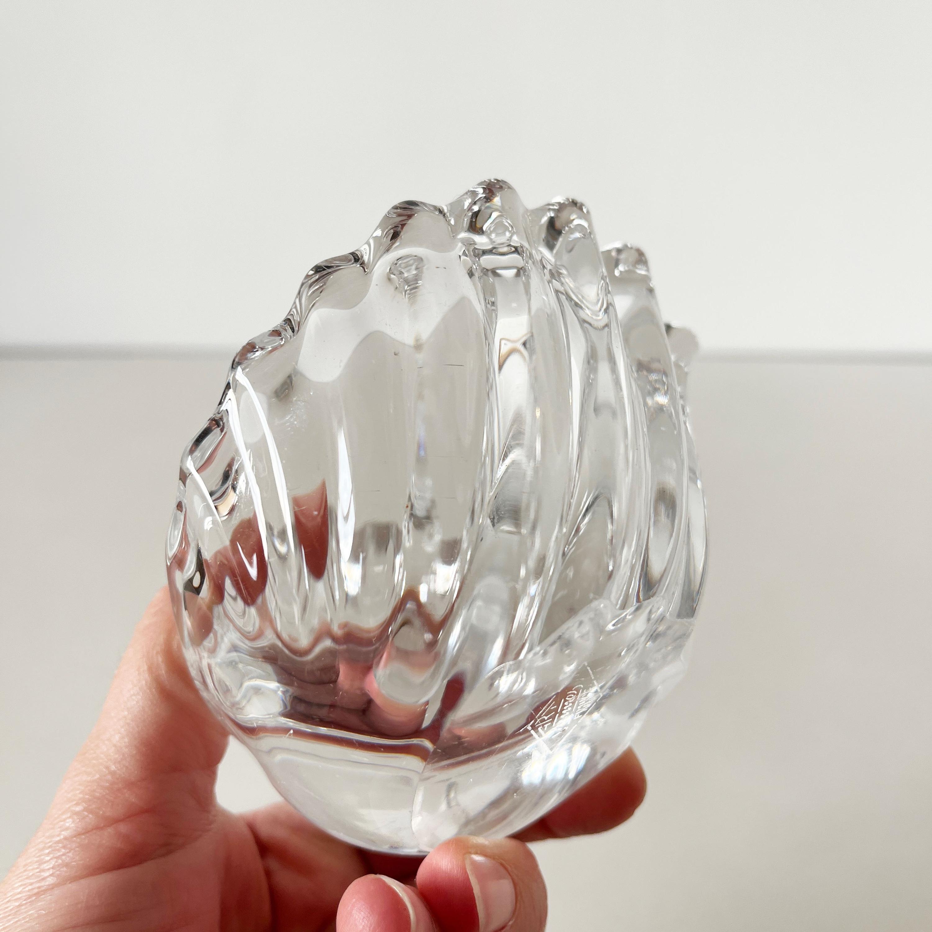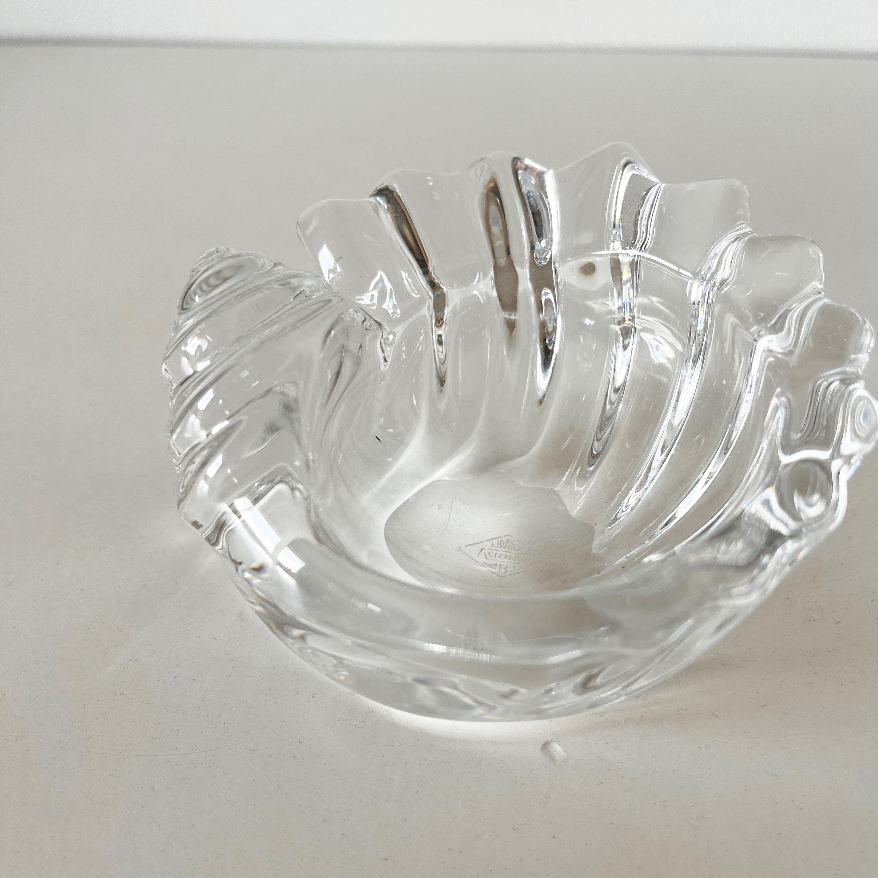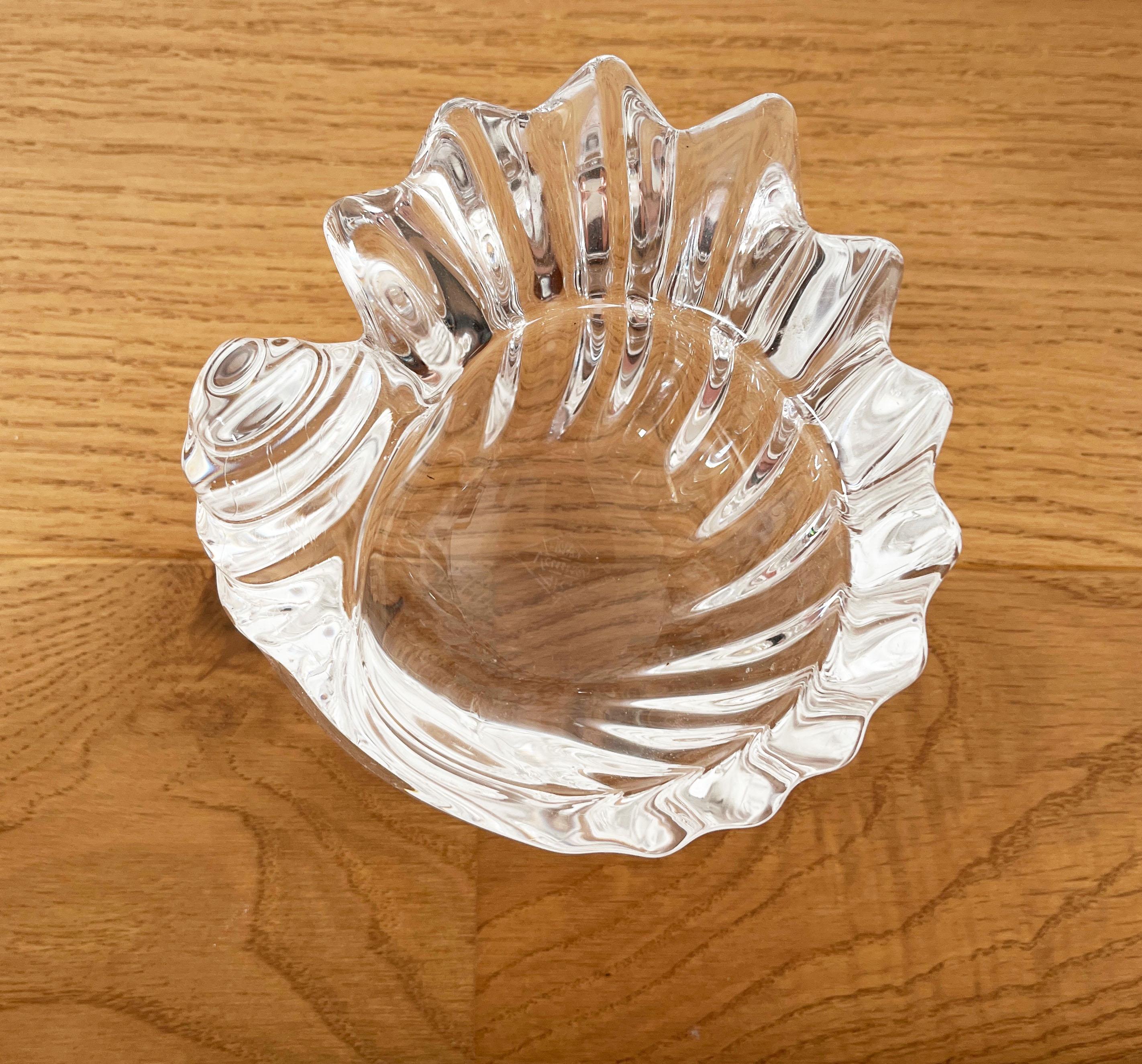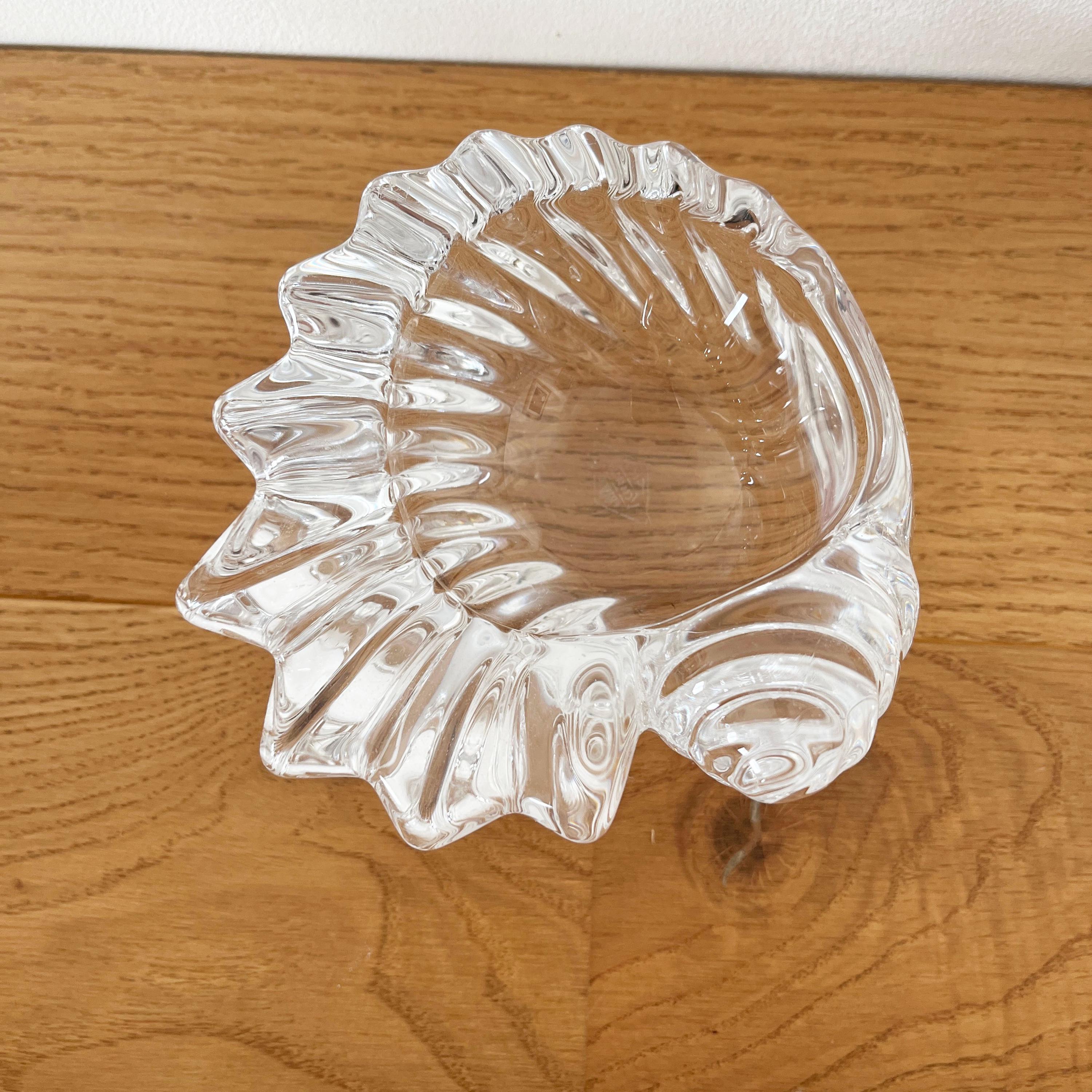Antique ashtray or small trinket dish in solid Vannes crystal in the shape of a seashell. French work from the 1950s.