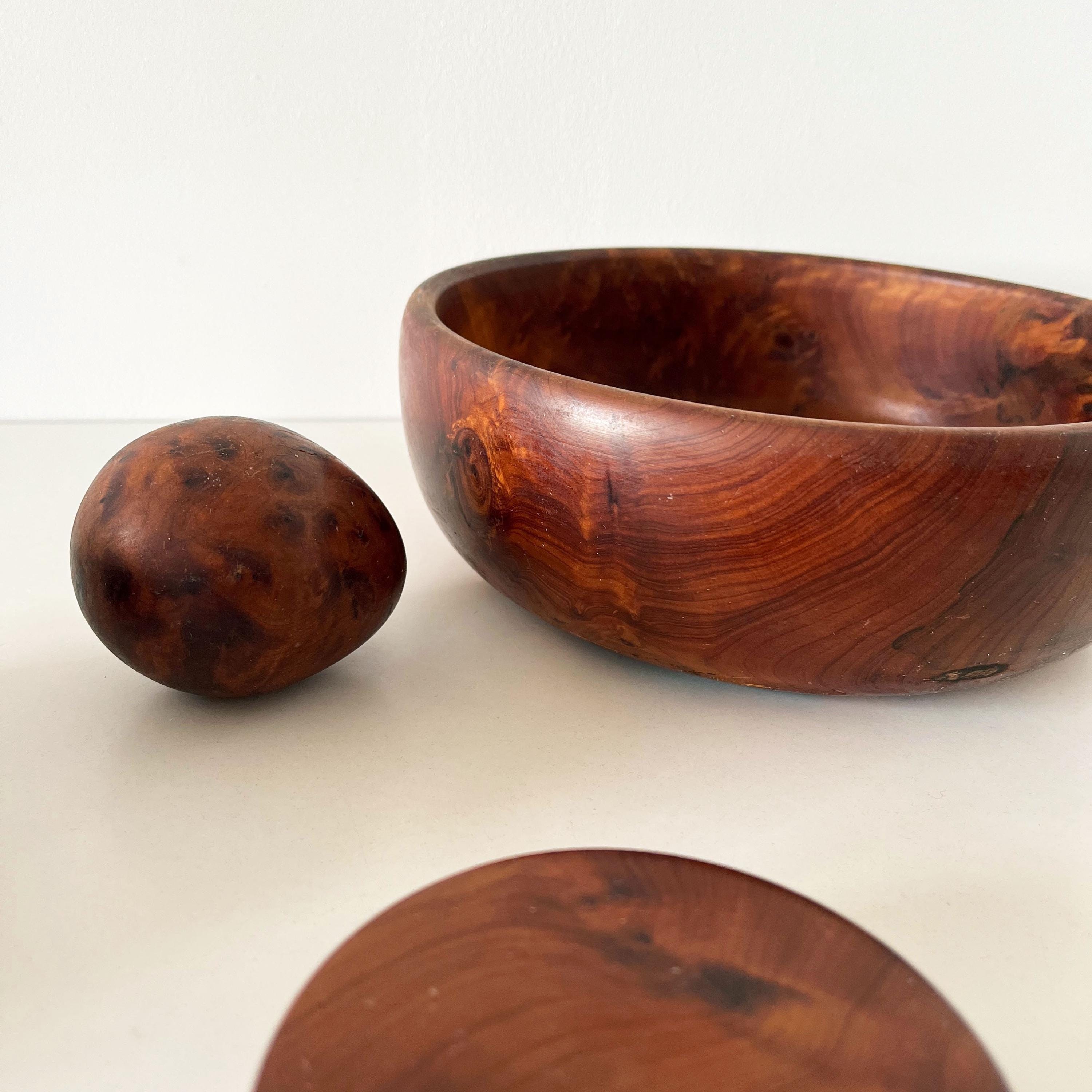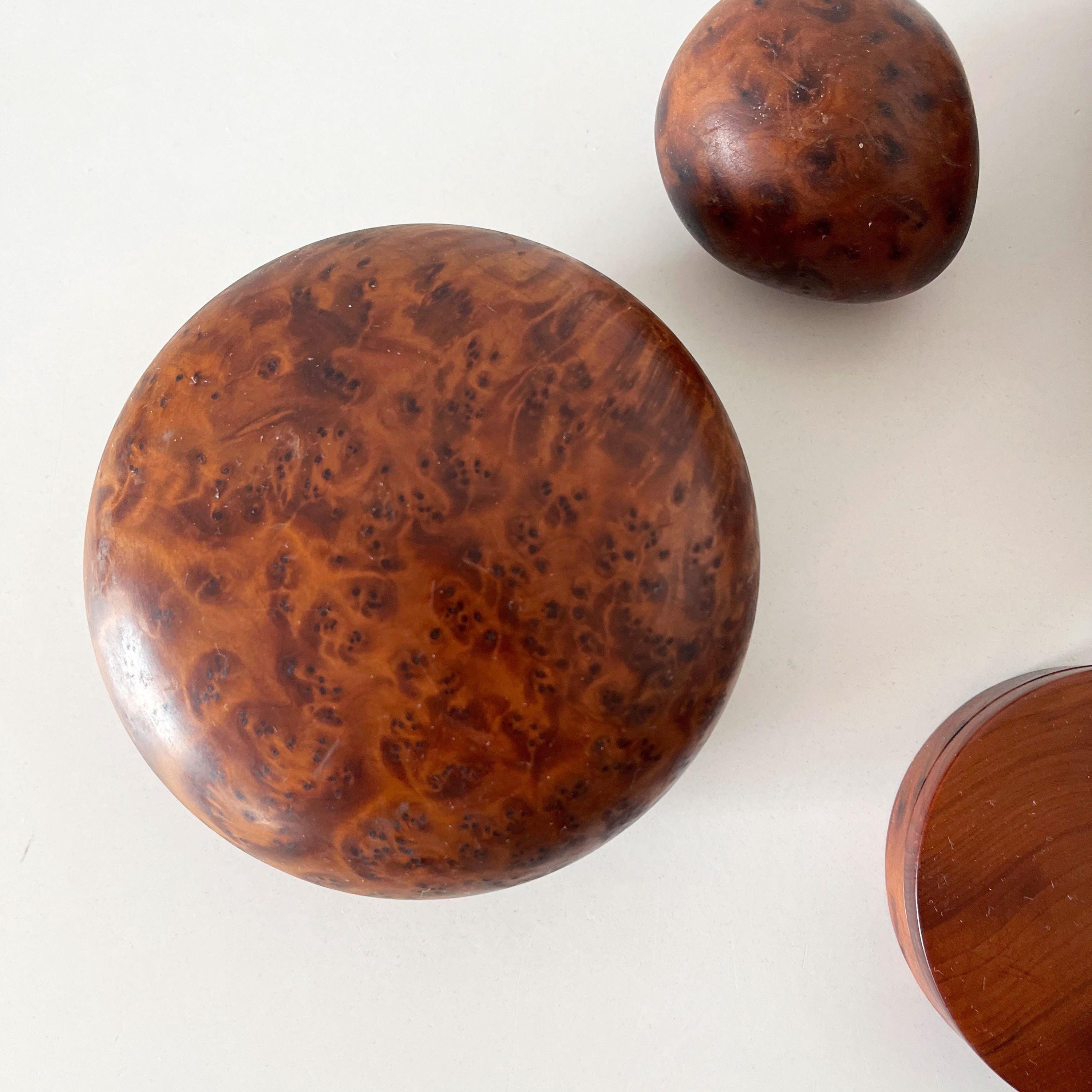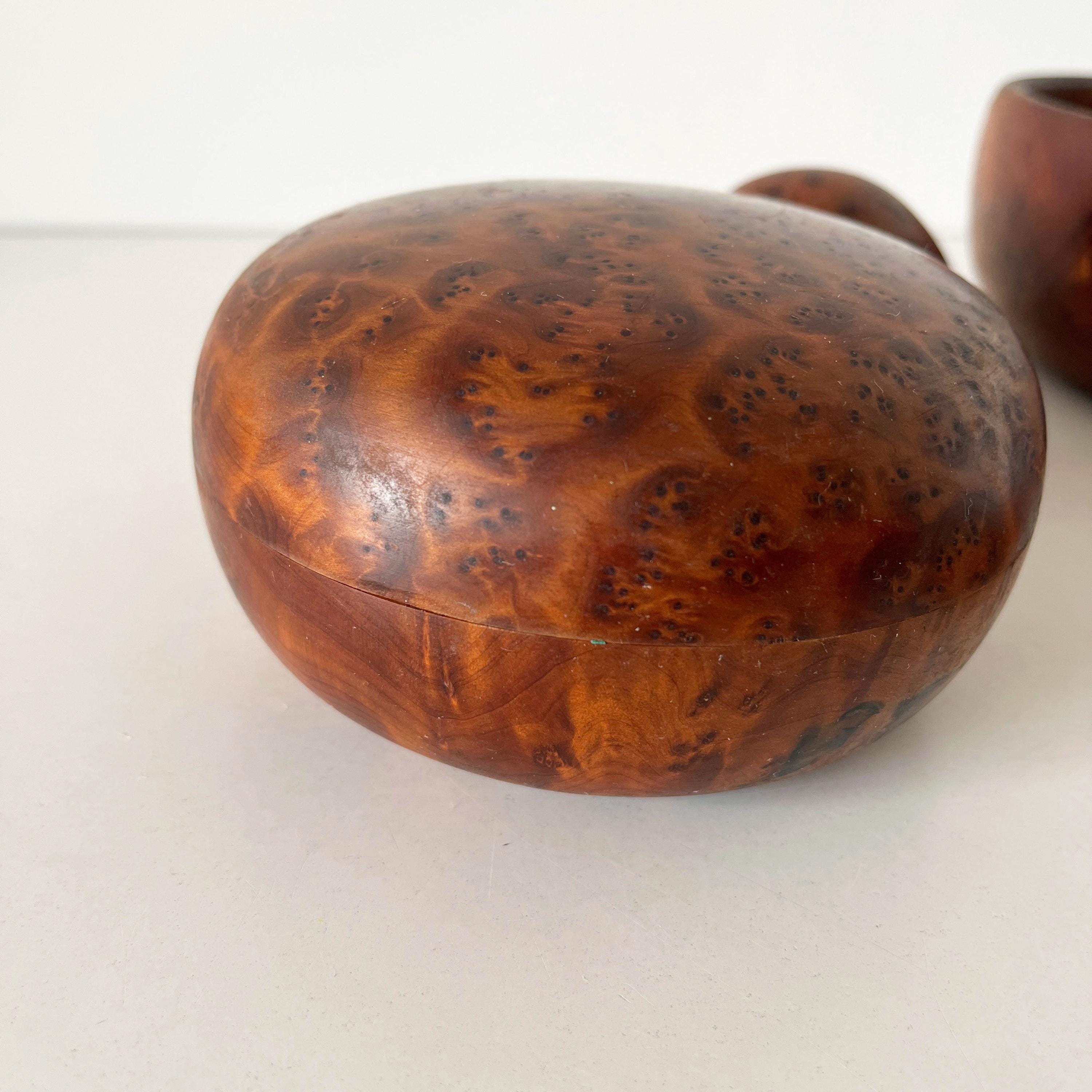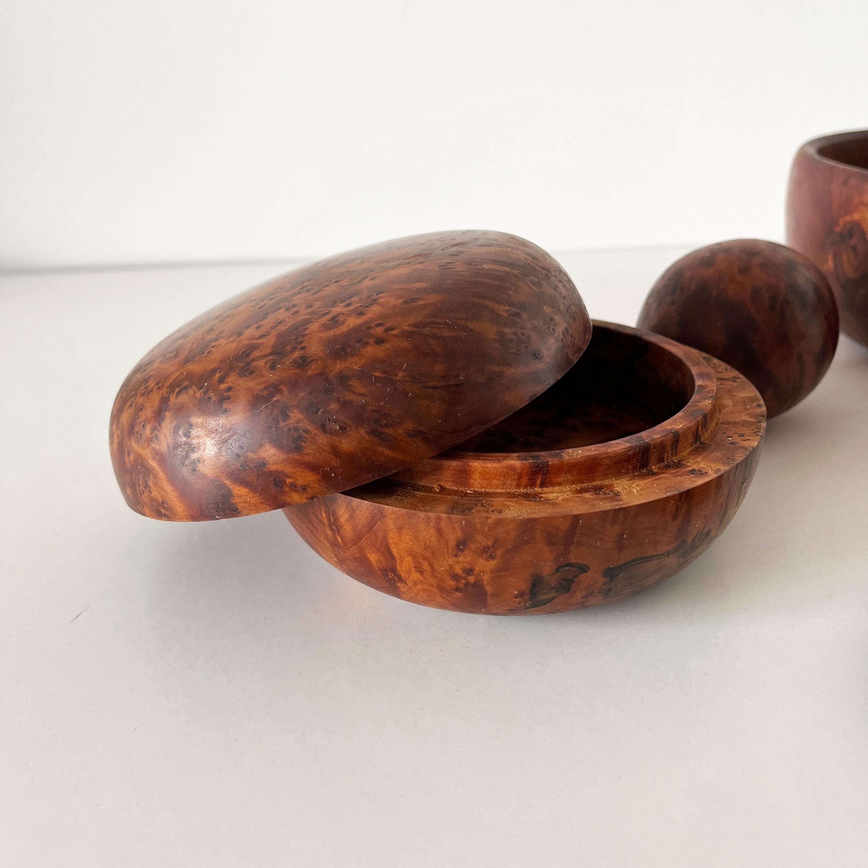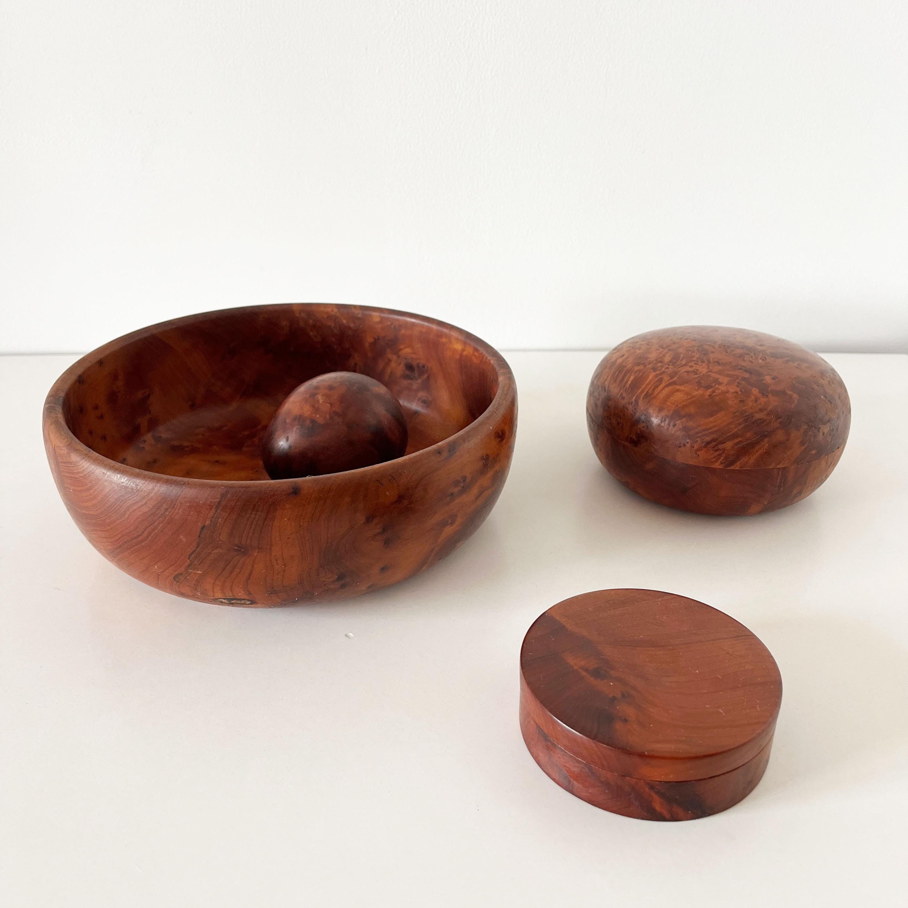 Set of cutting boards and boxes in solid wood, made of elm burl, from the 1970s