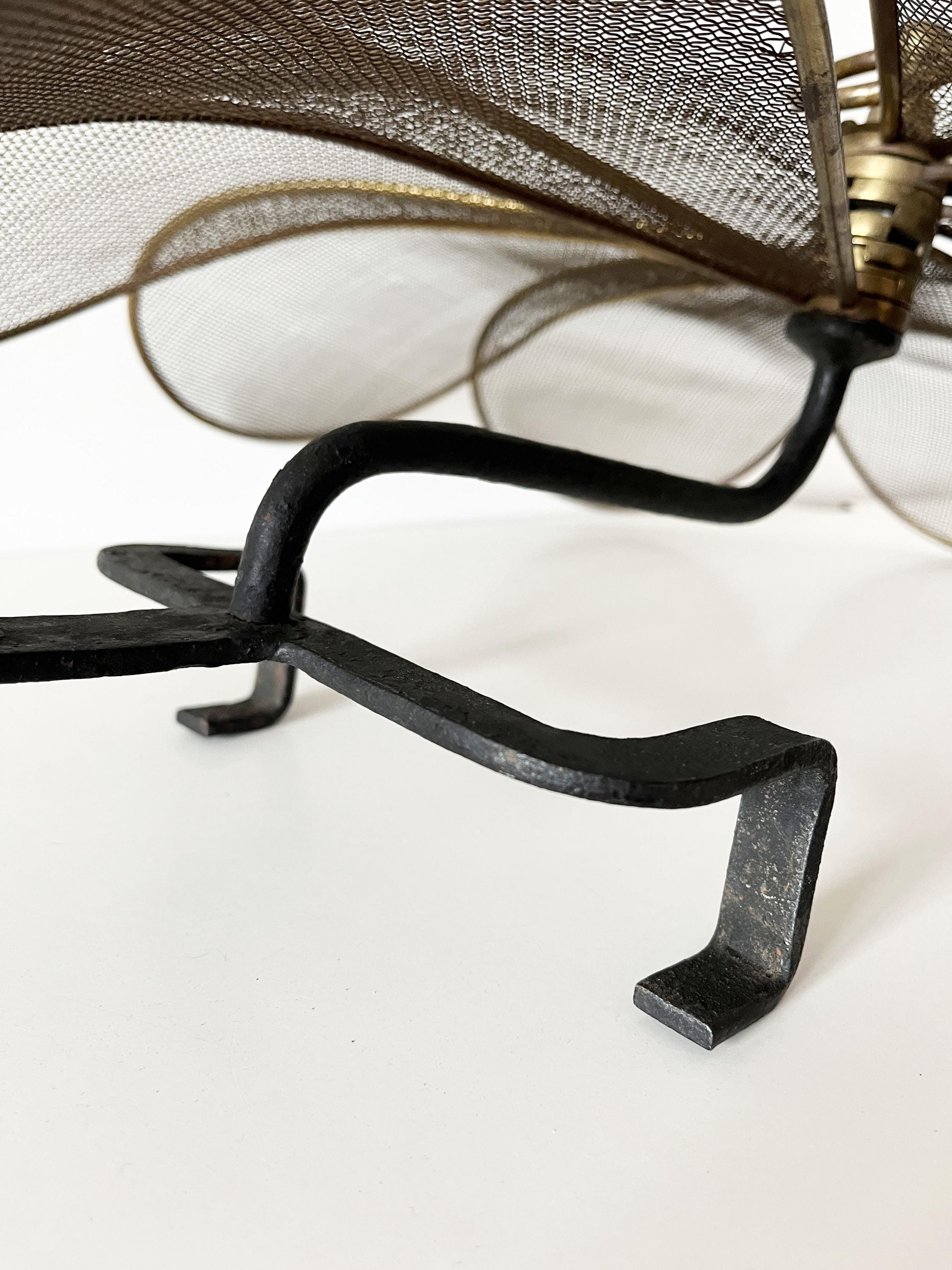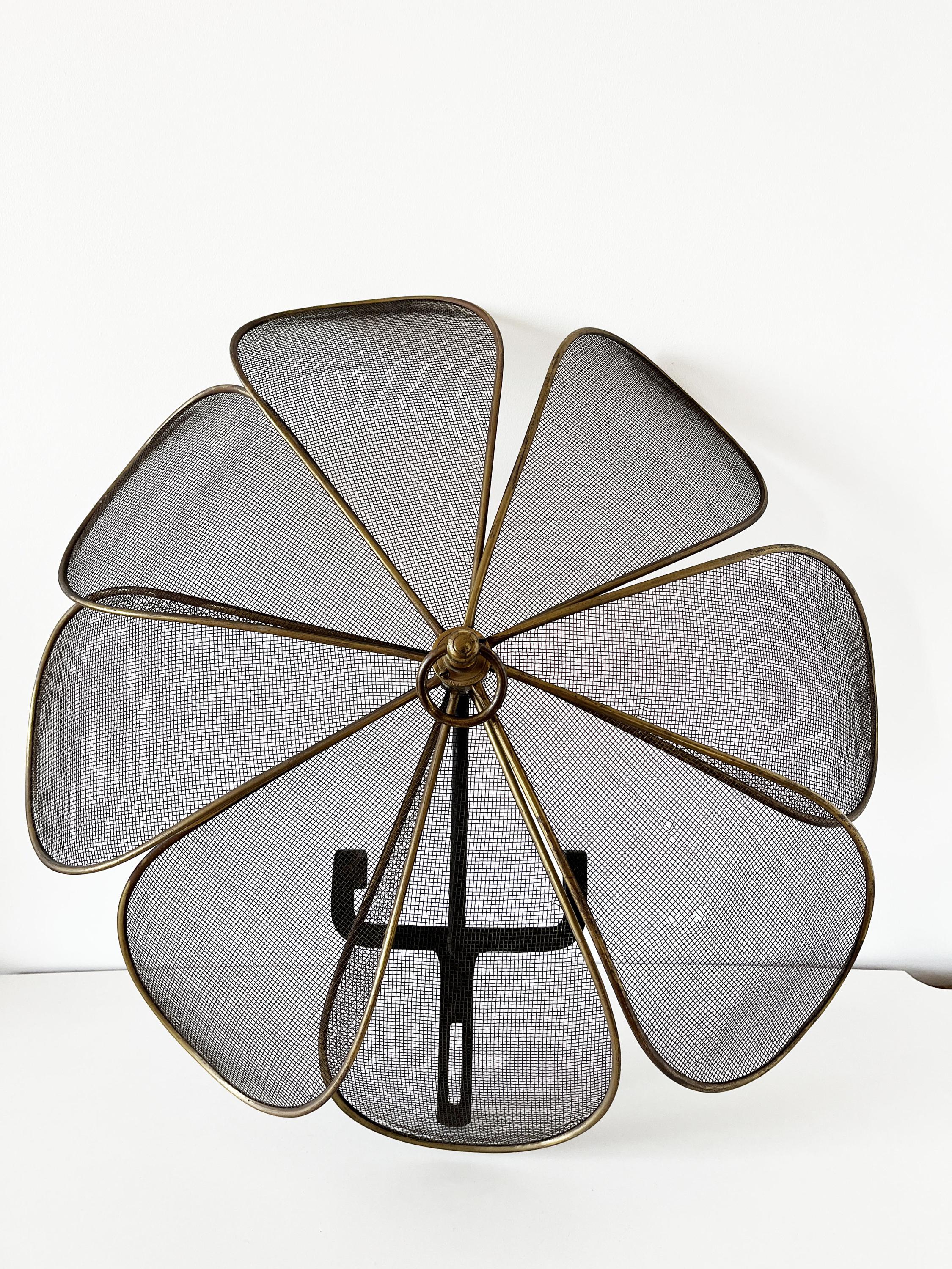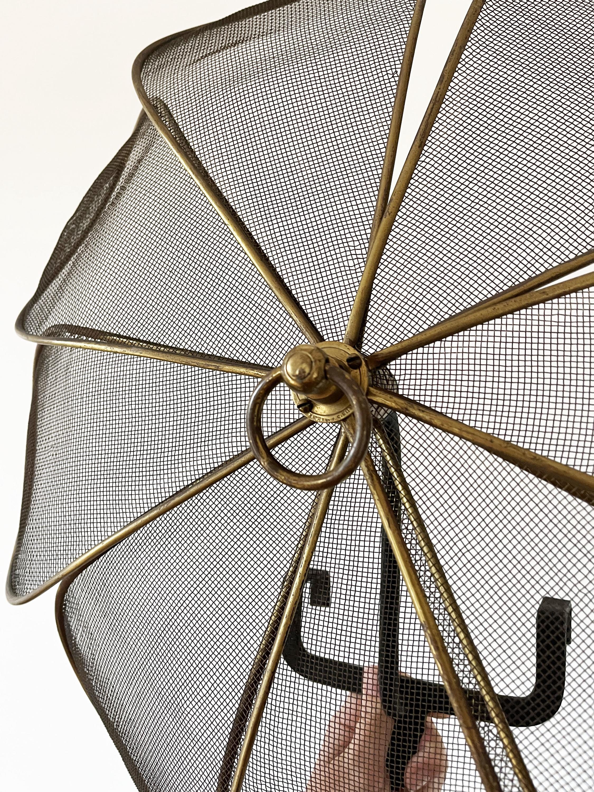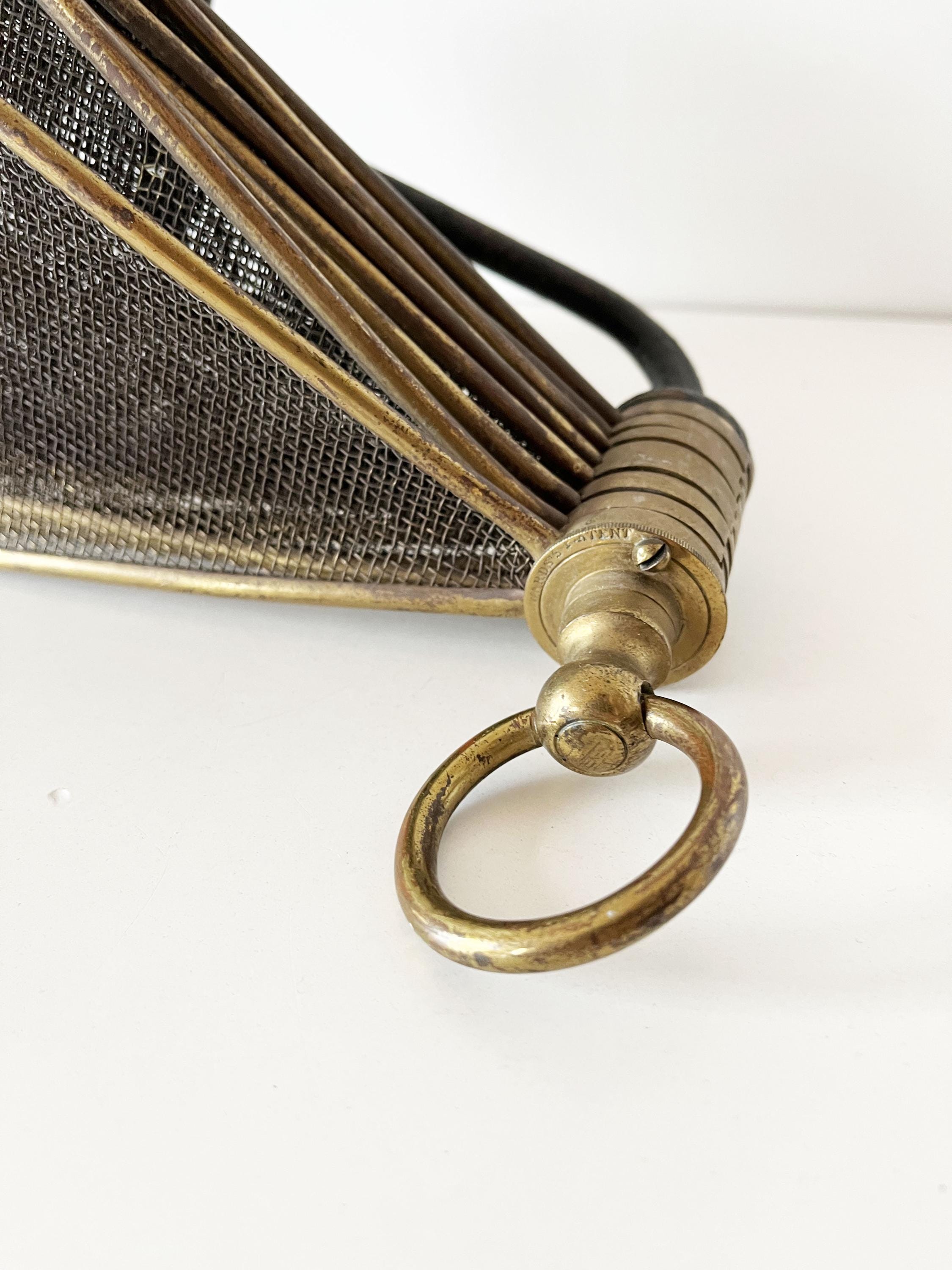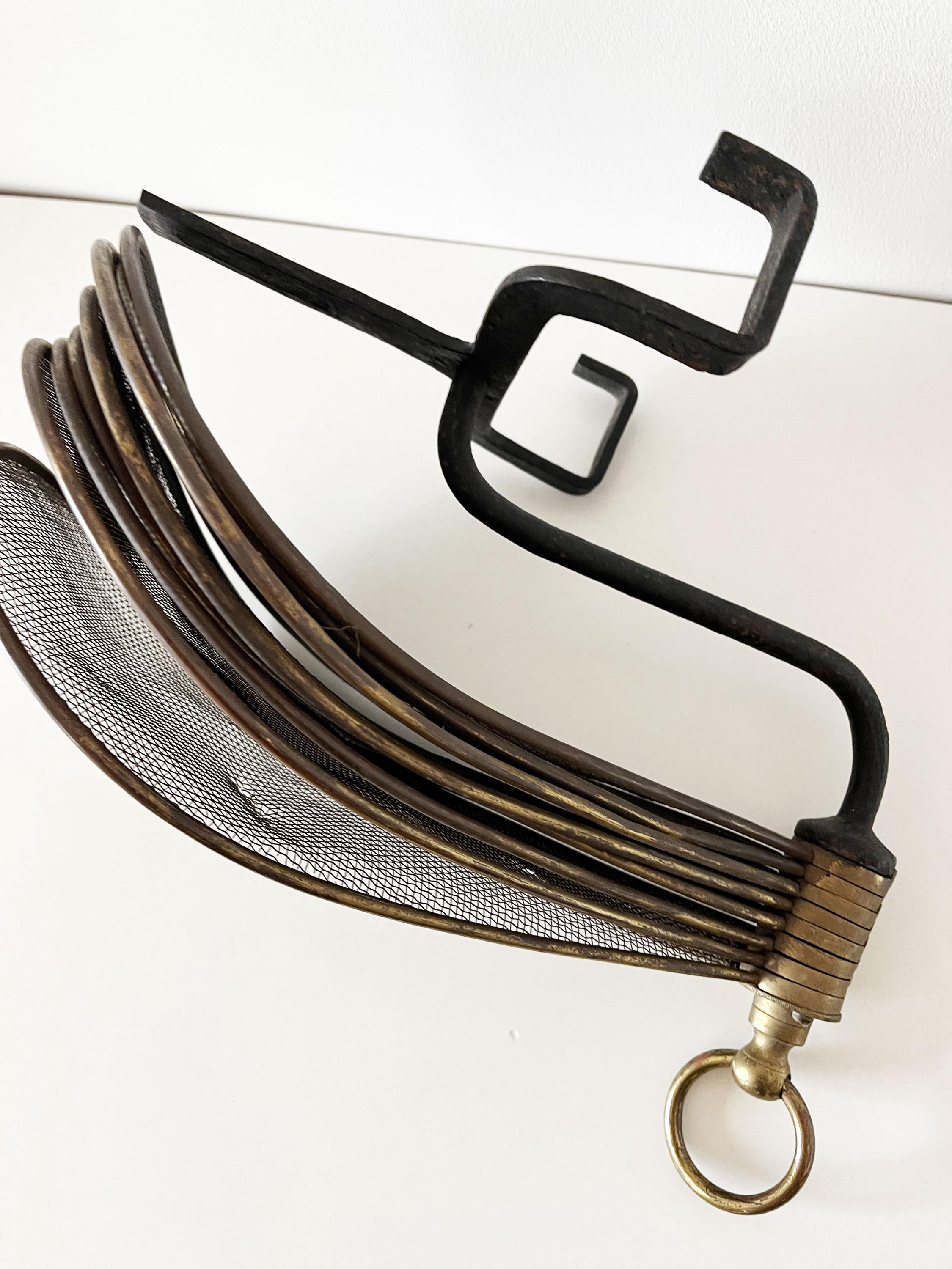 Antique French fireplace screen made of brass and cast iron.