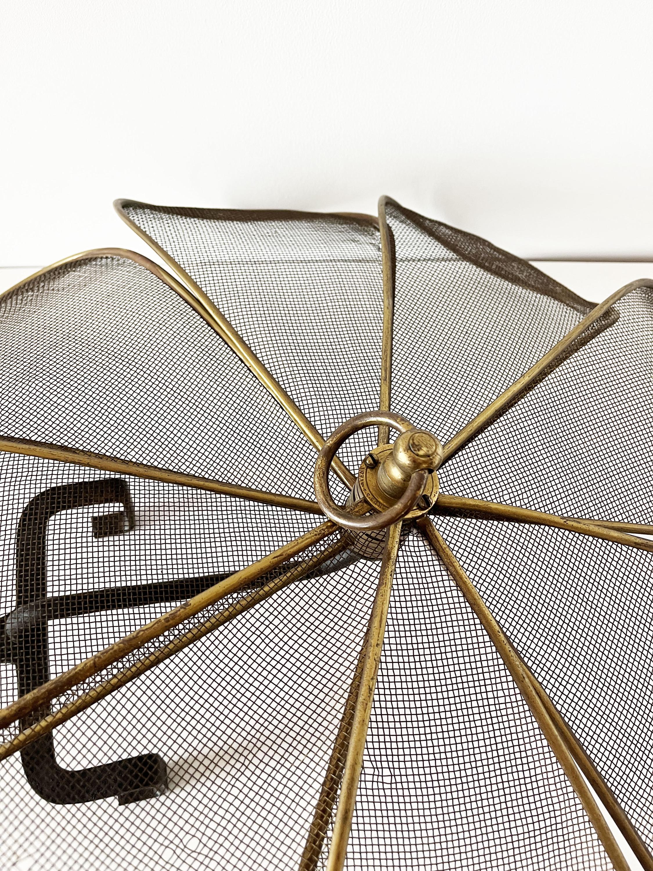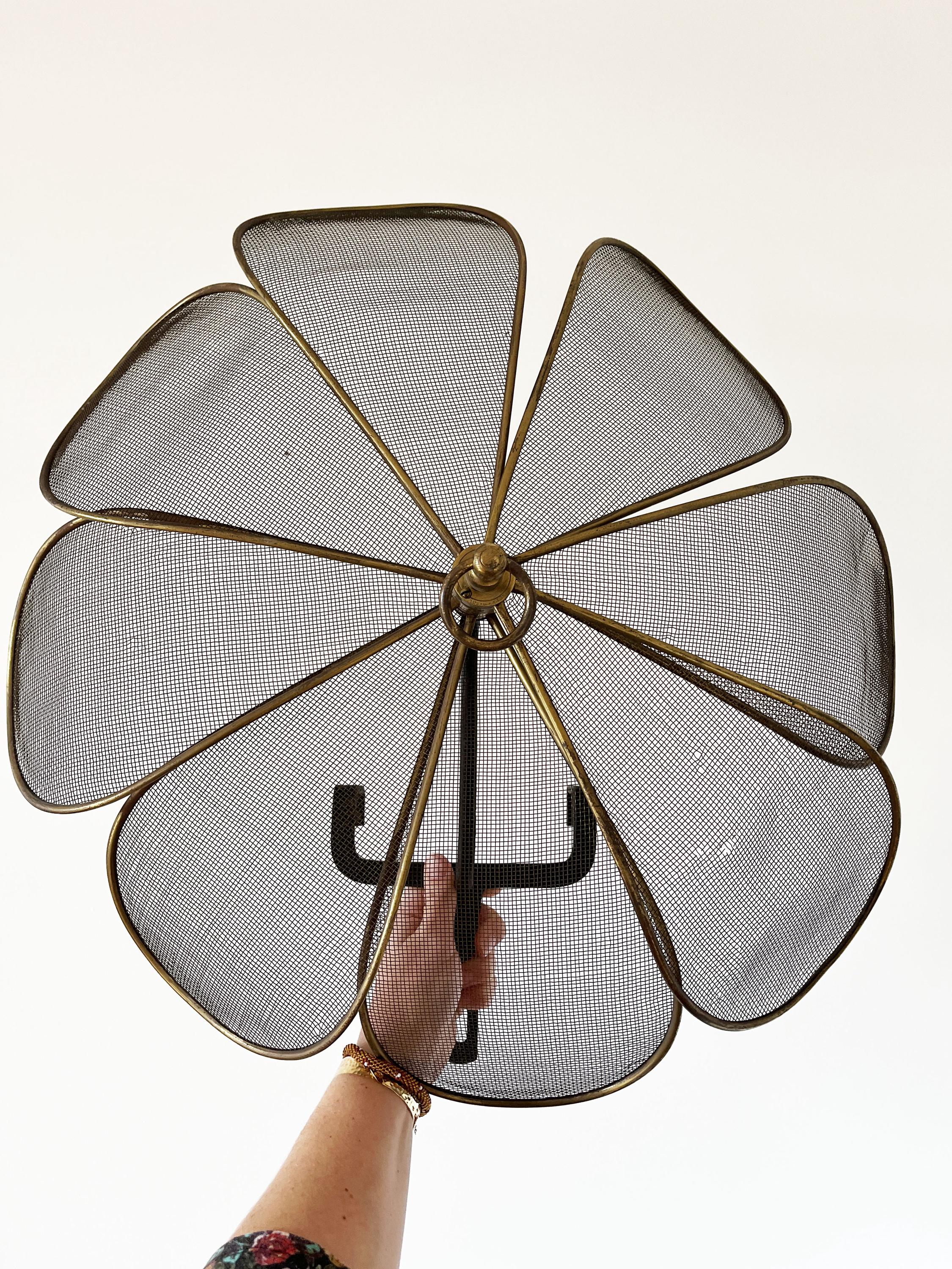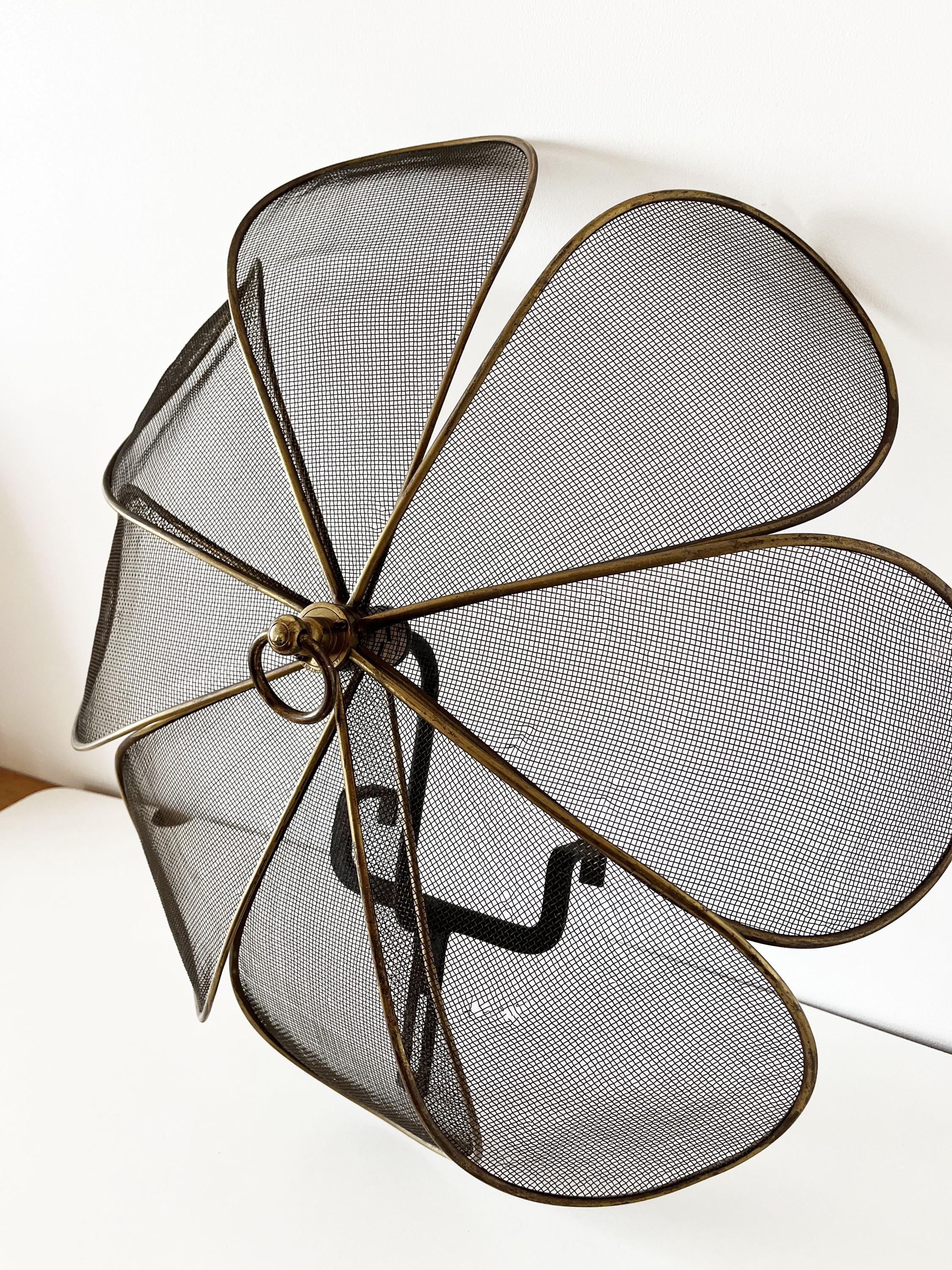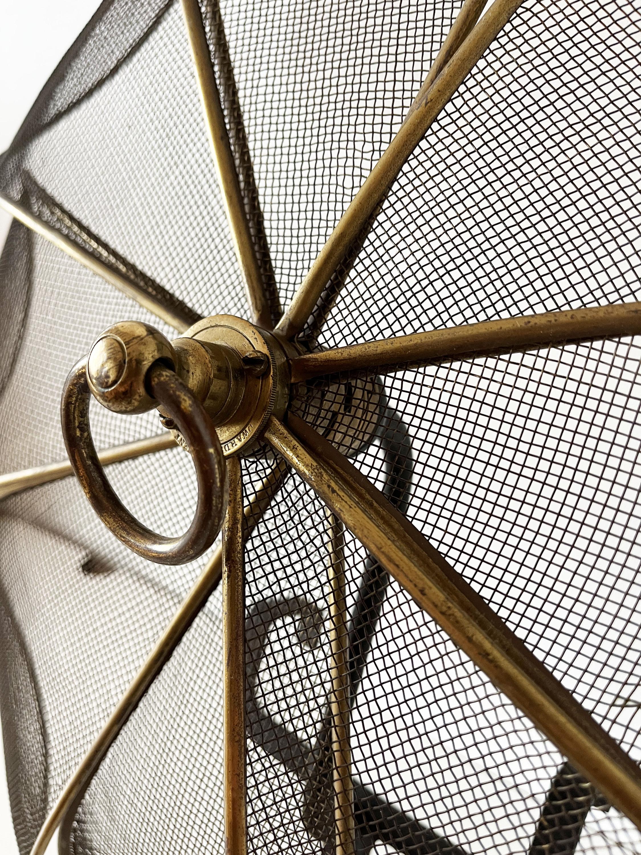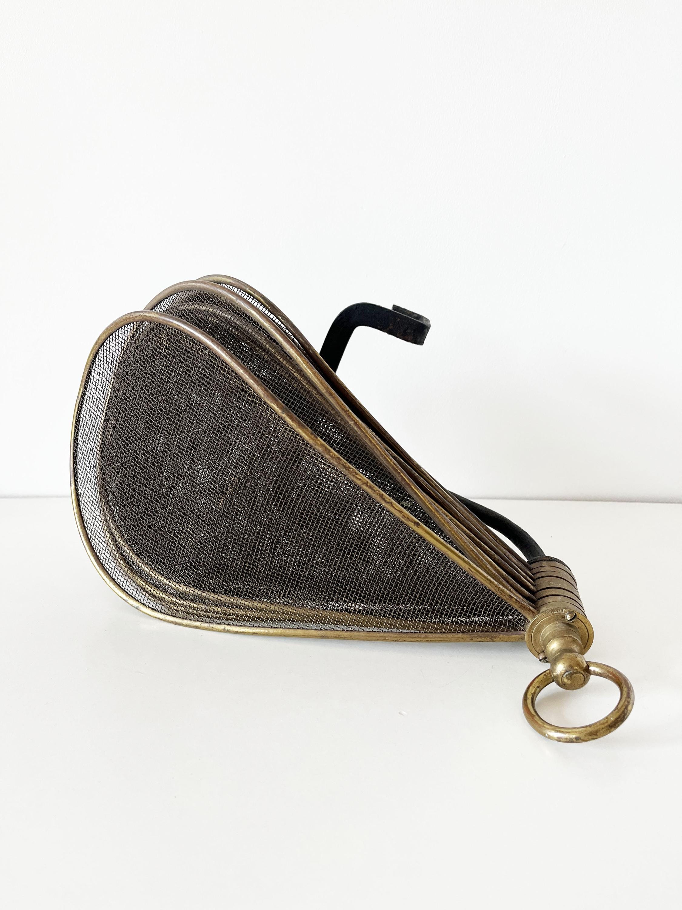 Antique French fireplace screen made of brass and cast iron.