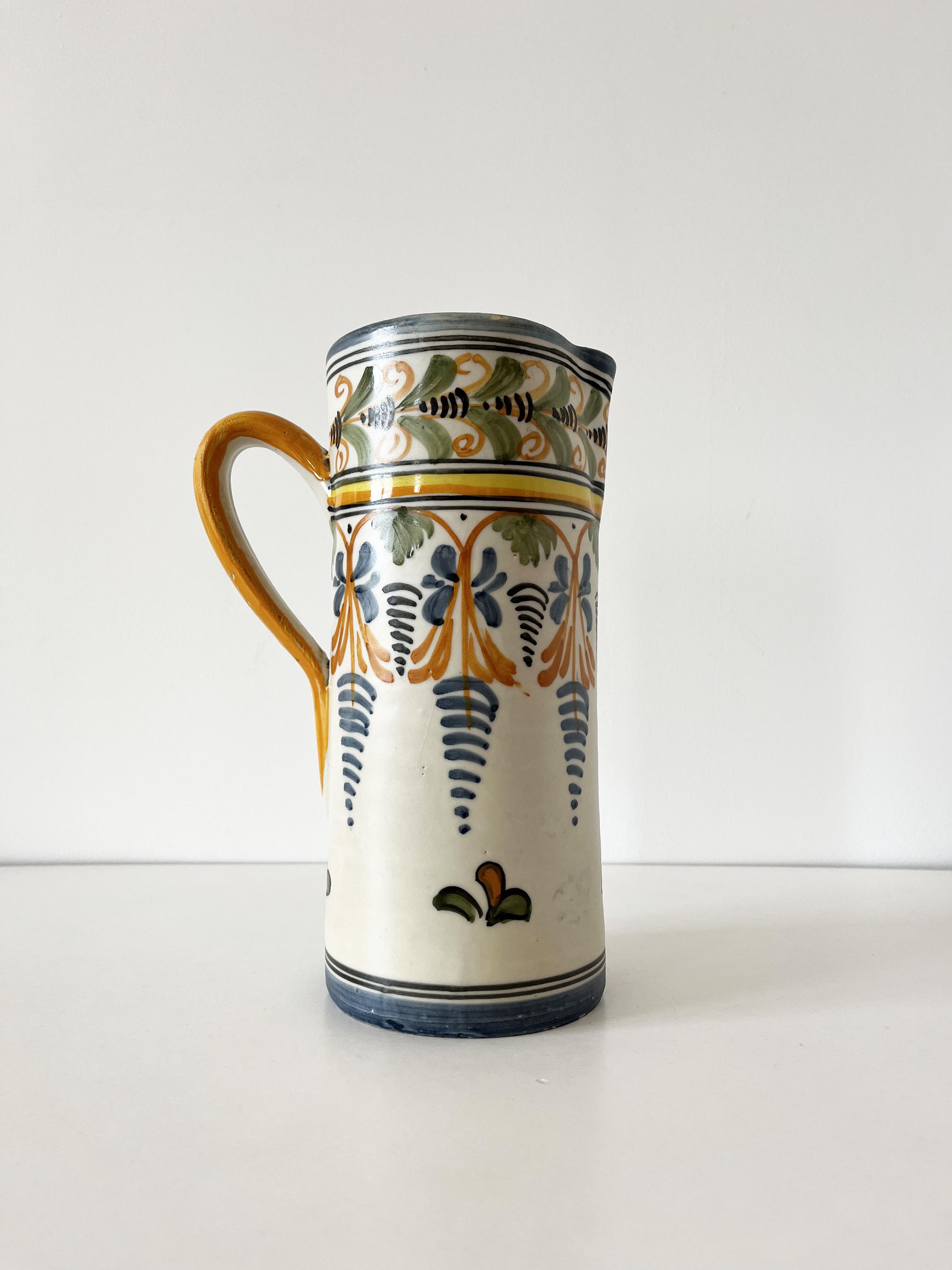 Beautiful lines, floral pattern and stripes in shades of green, ochre, blue and white.