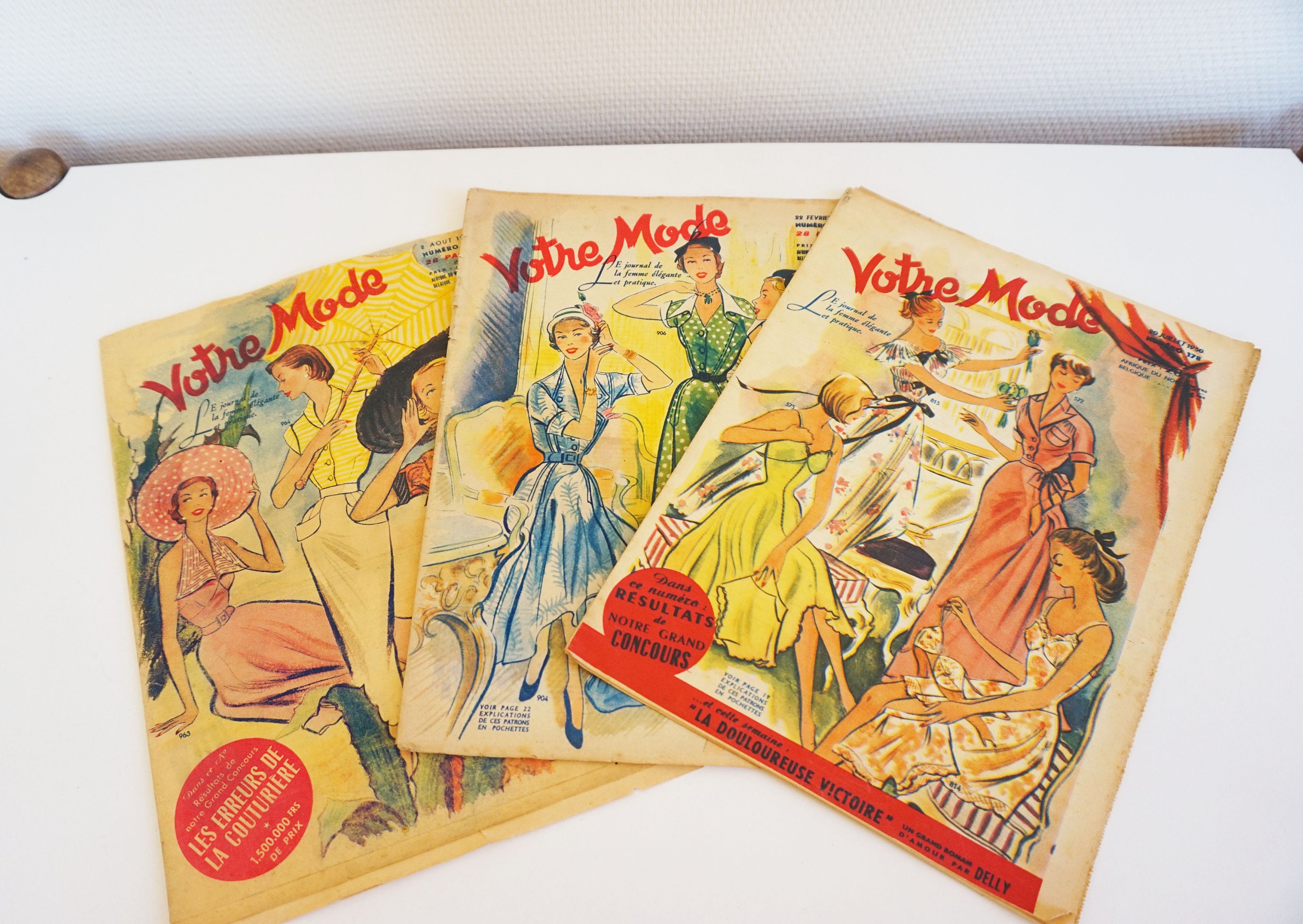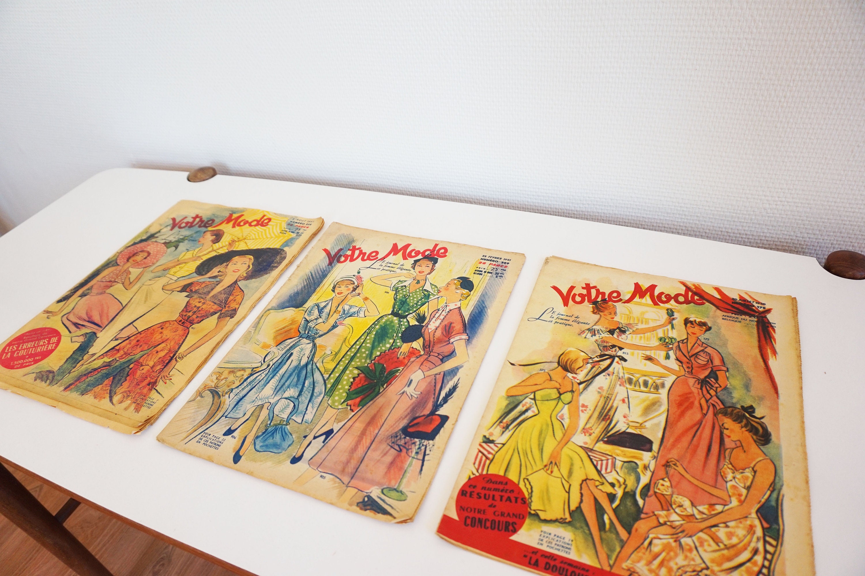 Nice set of 3 journals or magazines "fashion" vintage 1950's and 1951.