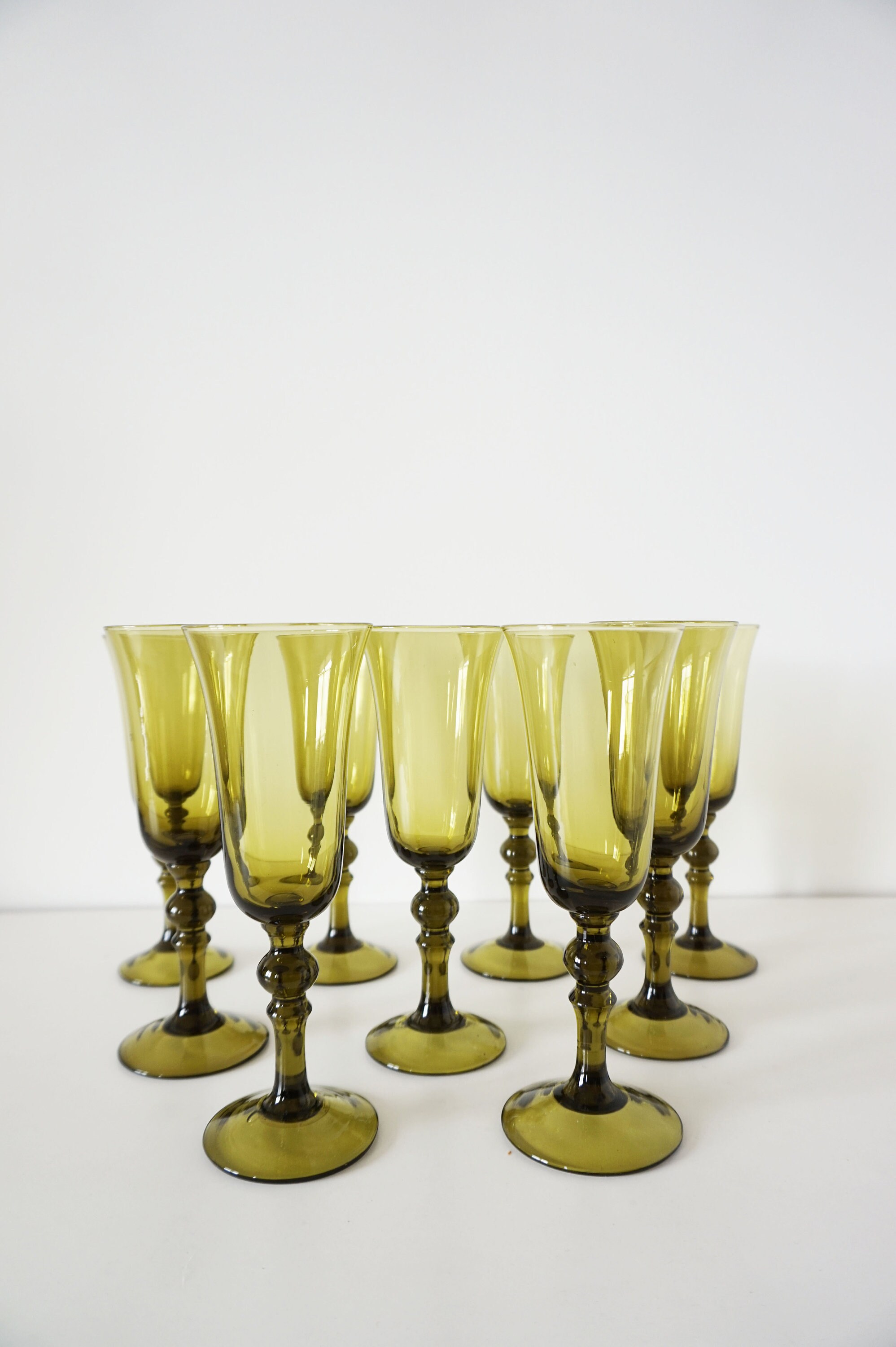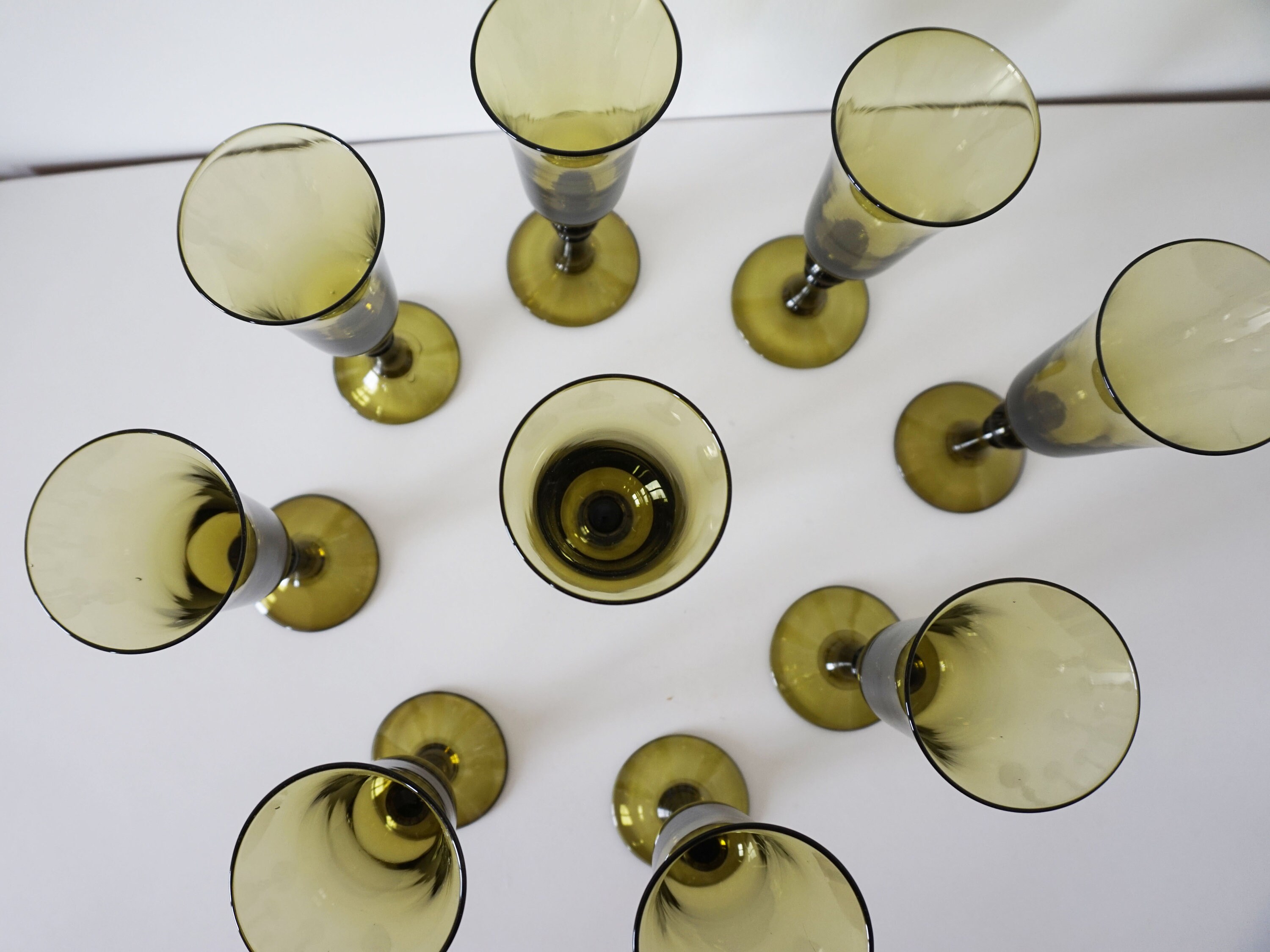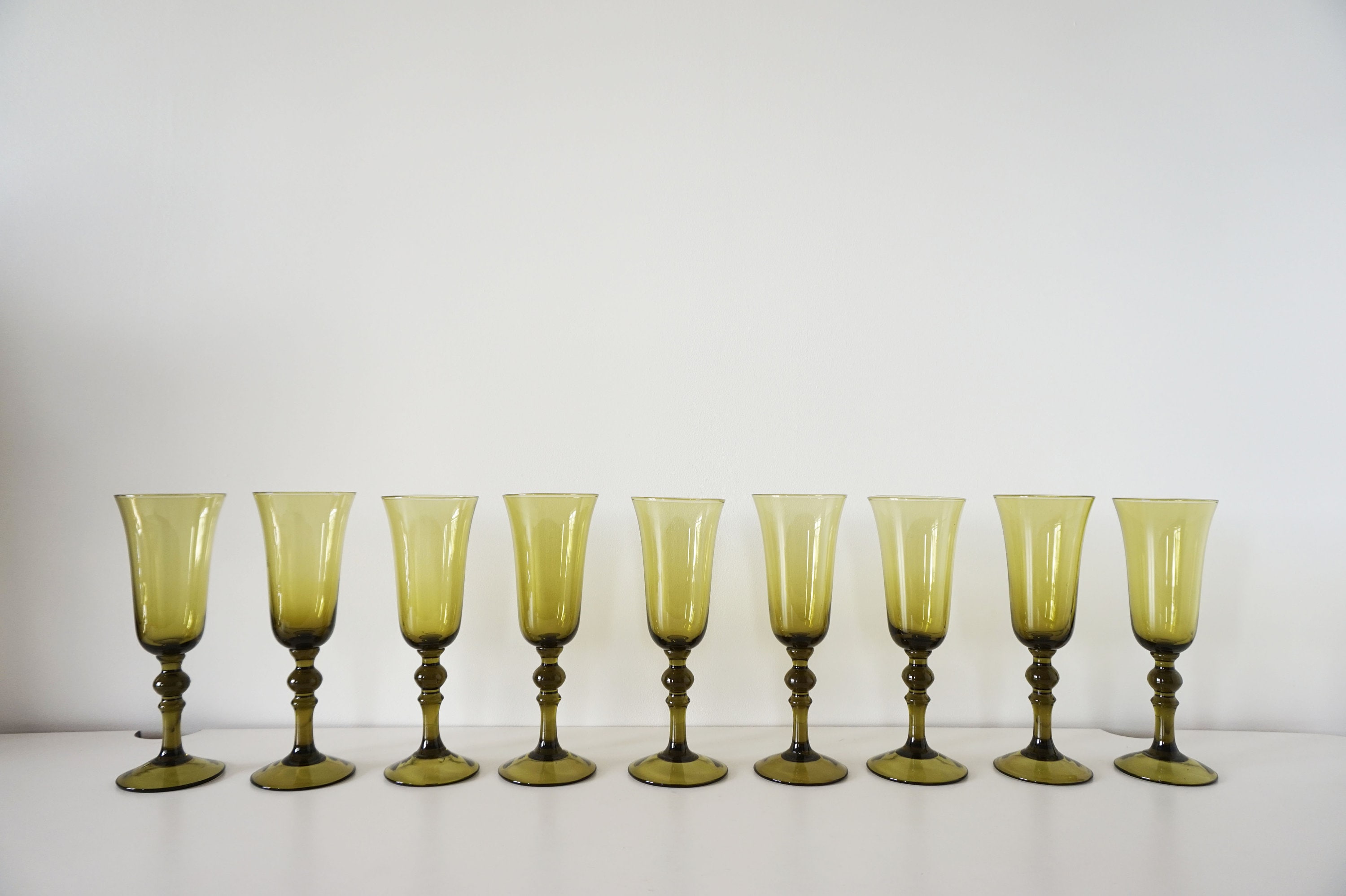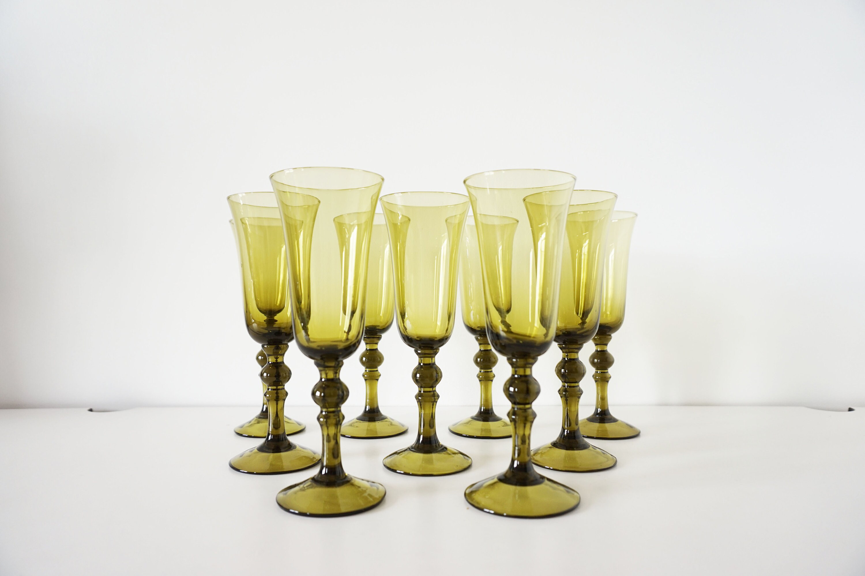 Very nice batch of 9 flutes or glass vintage champagne cup of 1960s blown glass.