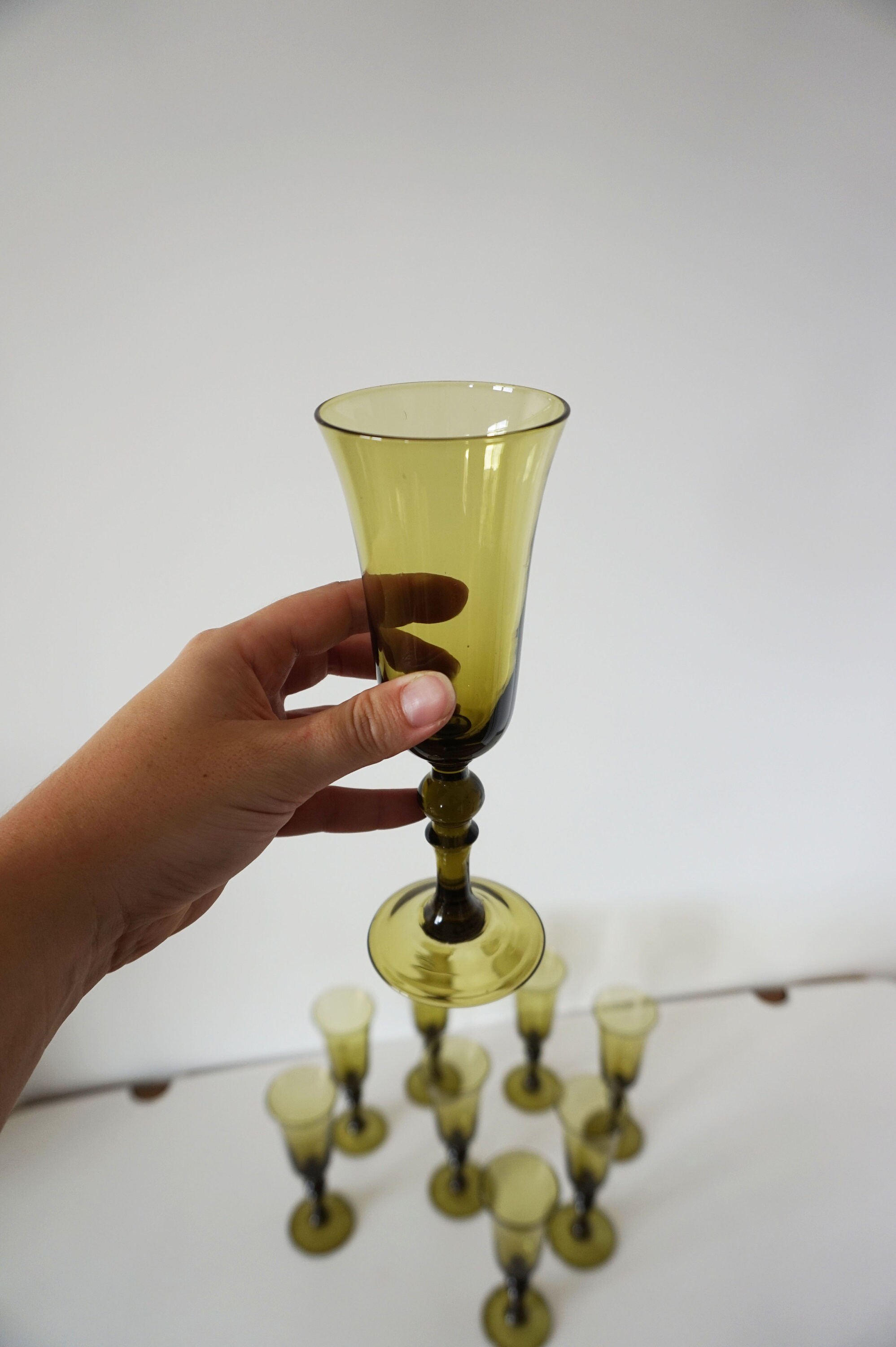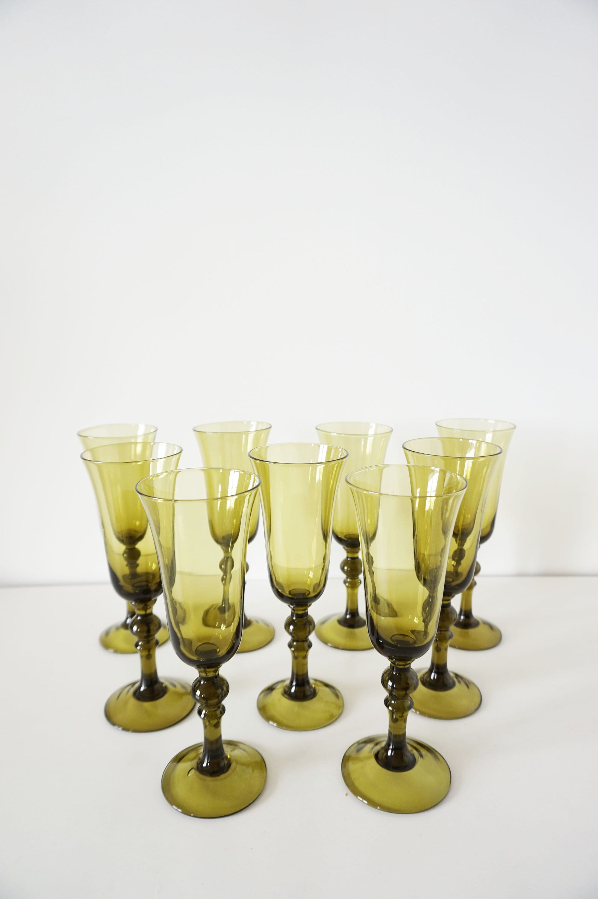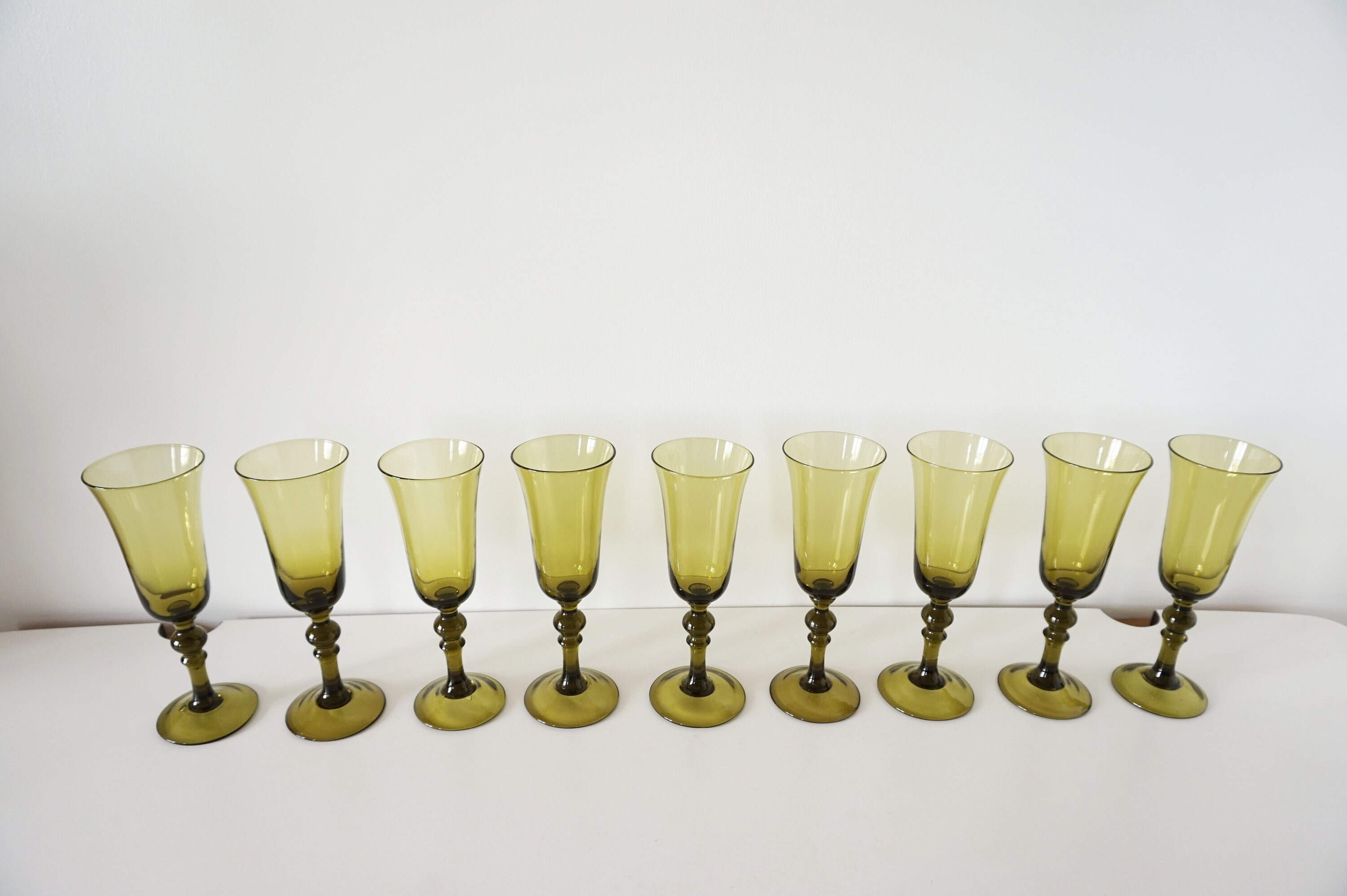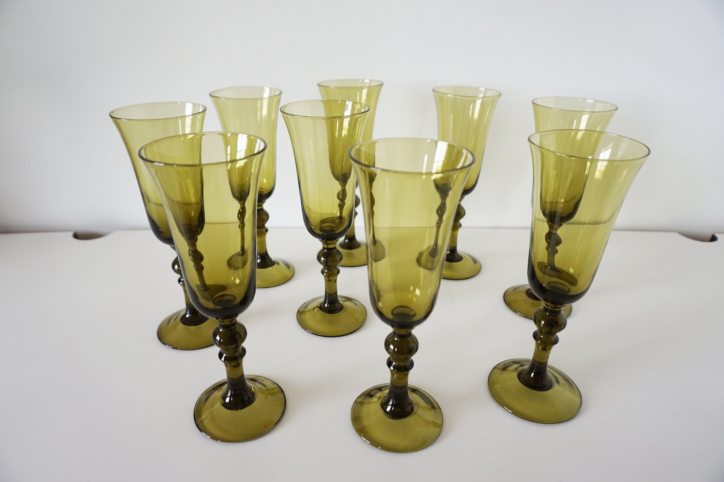 Very nice batch of 9 flutes or glass vintage champagne cup of 1960s blown glass.